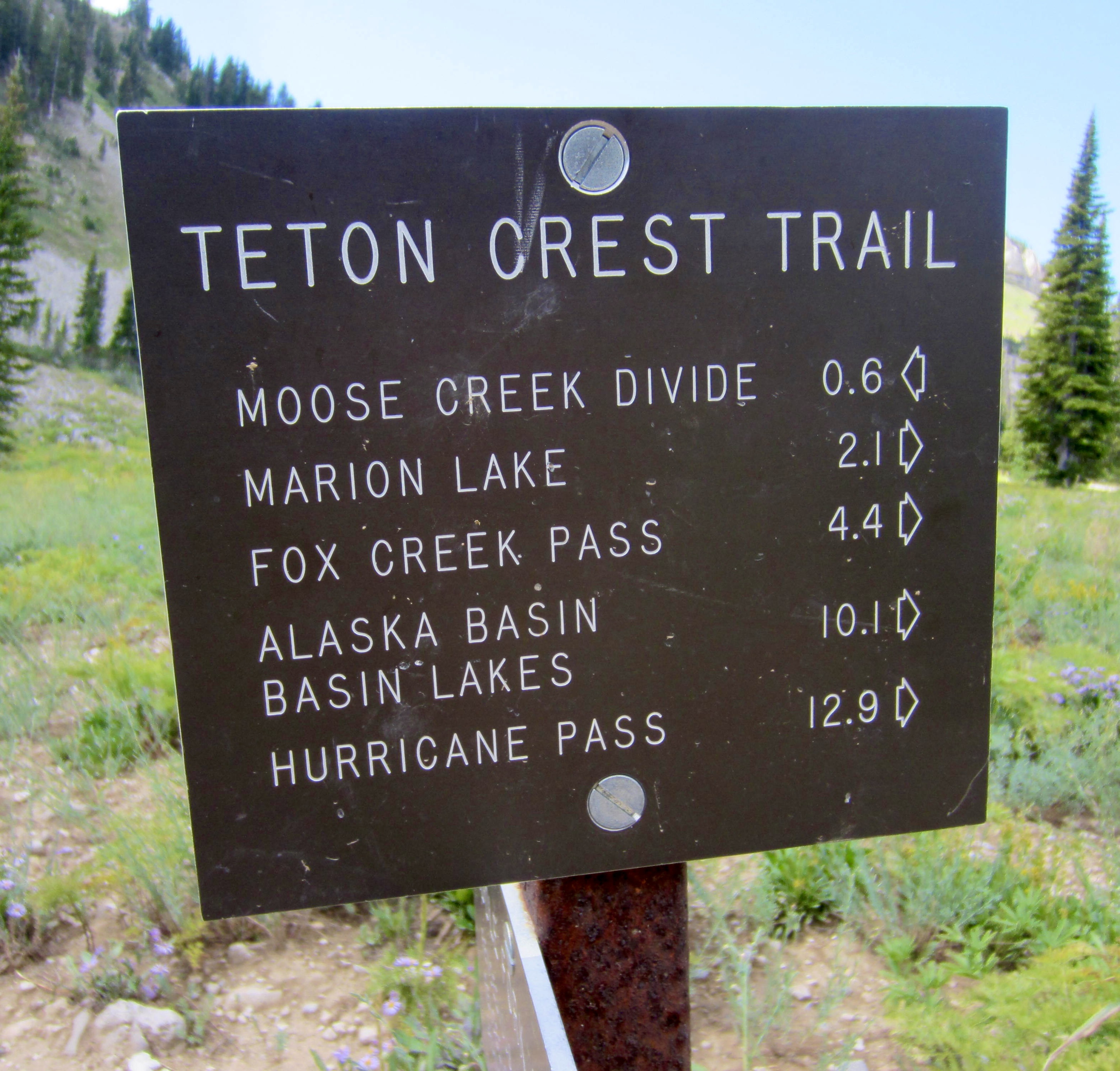 Despite its name, the Teton Crest Trail does not really follow any sort of topographic crest. Instead, it travels primarily along the western slope of the Teton Range, wandering back and forth across numerous spur ridges, crossing over several high passes, and dropping into several basins and valleys. It attains a maximum elevation of 10,700 feet at Paintbrush Divide and a local minimum elevation of 7800 feet at Cascade Forks. The average trail elevation is approximately 9500 feet.