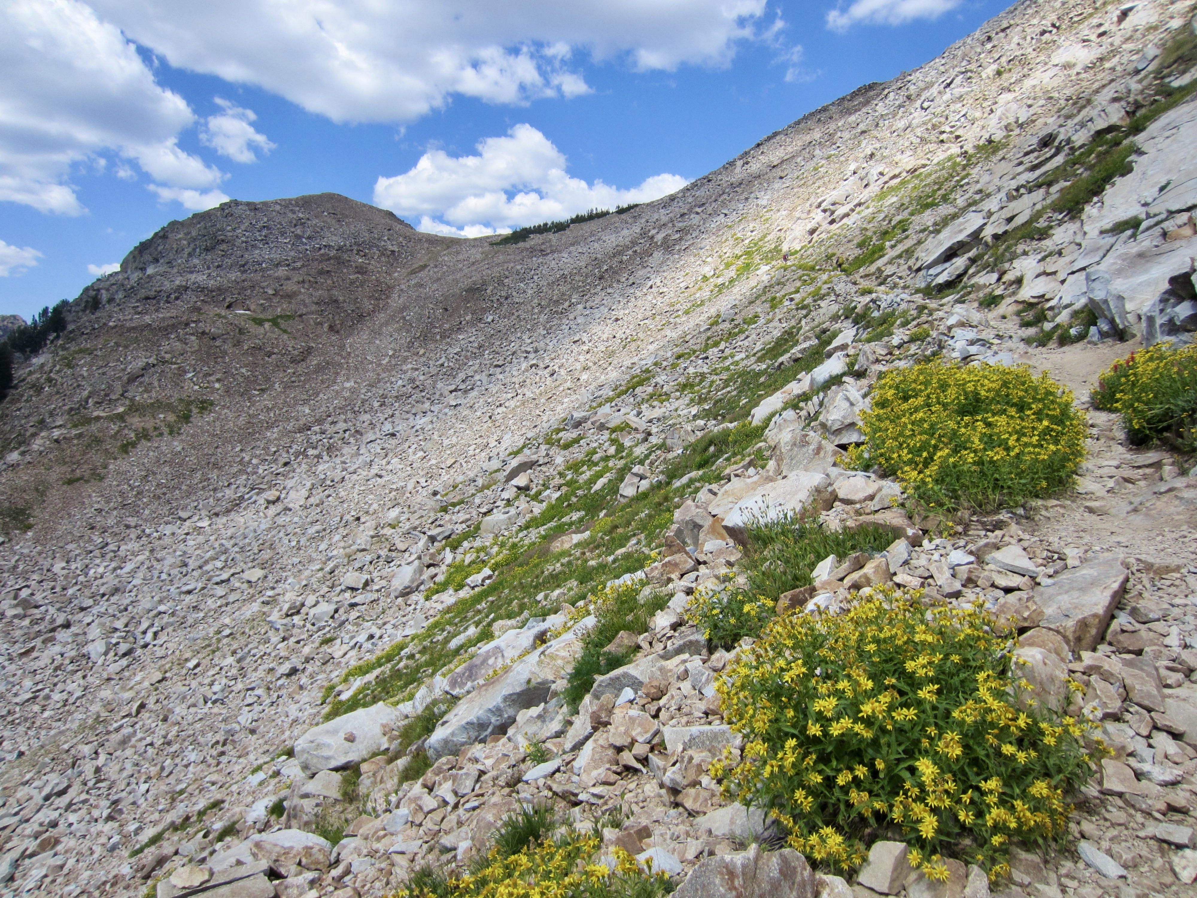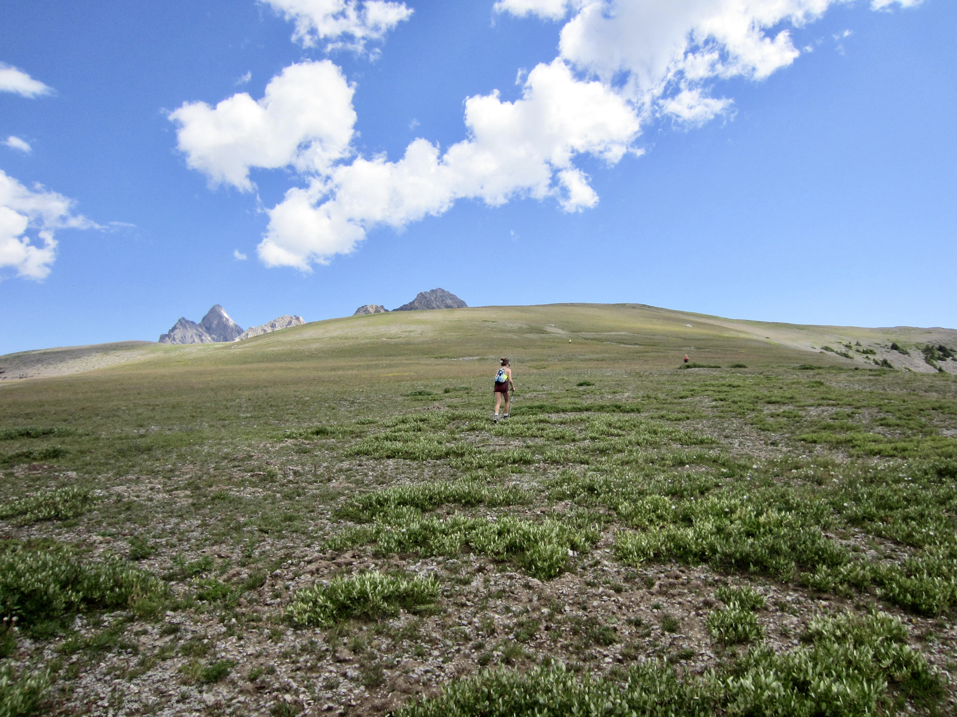 At the northern edge of Alaska Basin, where the TCT reaches a junction atop a small rib, Beth, Brooke, Eileen, and I dropped our backpacks and made an 1100-foot sidetrip up a gentle hillslope of alpine tundra.