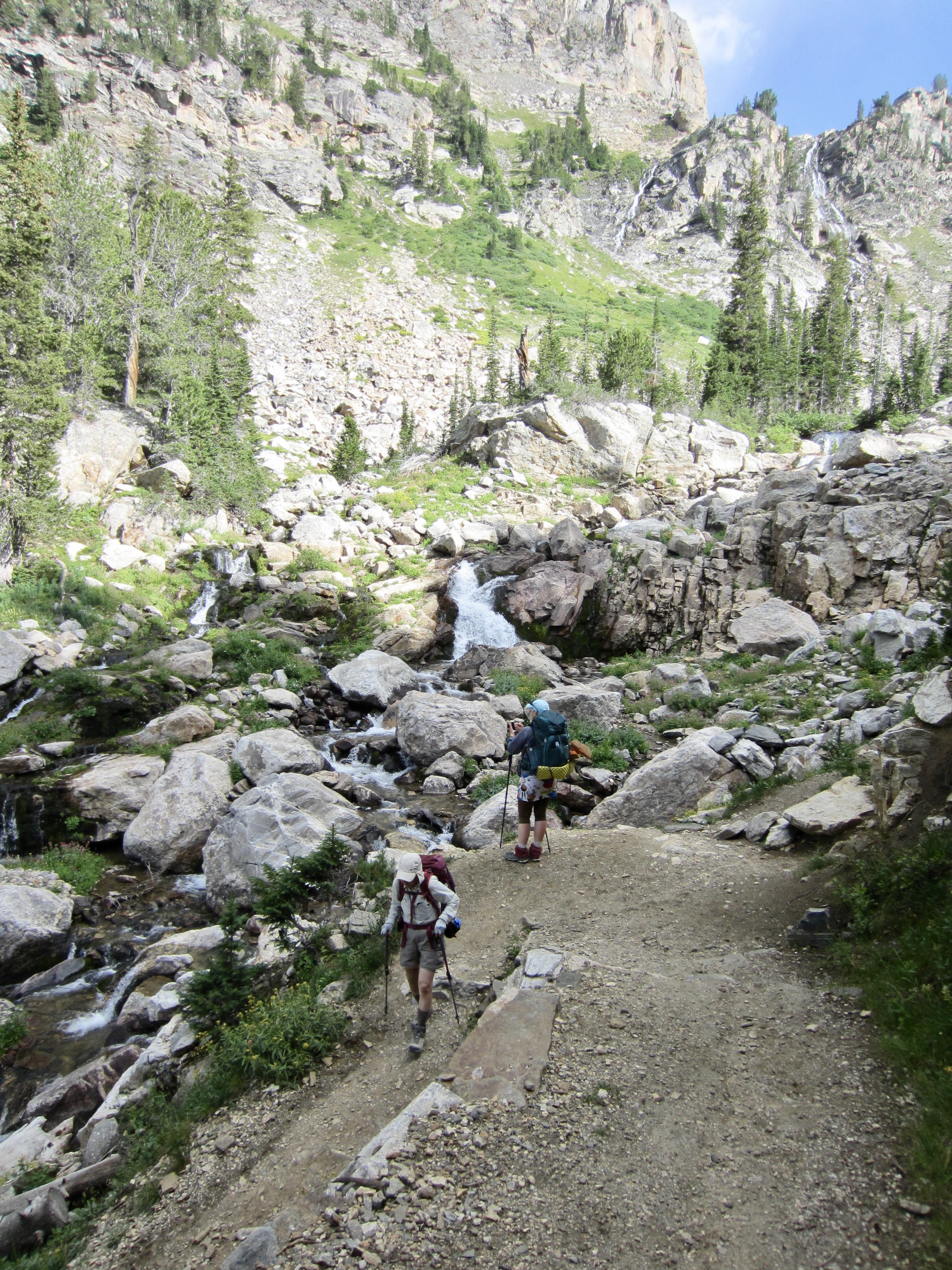 Our final day involved a steady descent through Lower Paintbrush Meadow and Paintbrush Canyon. After a few miles of hiking, Brooke bade everyone goodbye and hurried off to complete her bonus-day itinerary, which involved climbs of Middle Teton and South Teton and a sidetrip to Delta Lake (she was on a mission that even Stefan could appreciate).