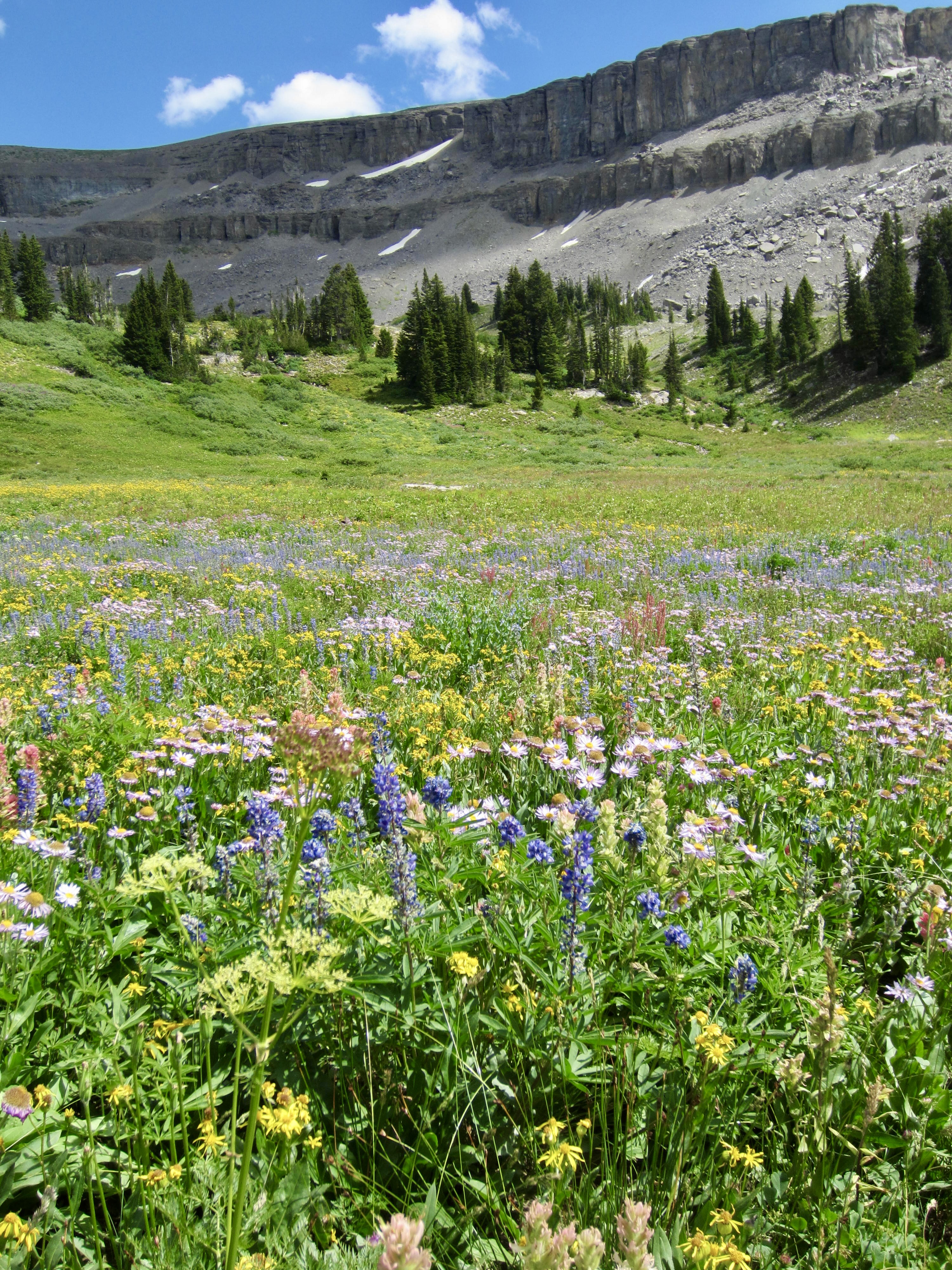 We all expected the trail to offer spectacular views of the major Teton peaks, and these expectations were met or exceeded in abundance; every day delivered stunning new mountain scenery. There were also enough beautiful alpine lakes to provide ample swimming and/or gazing opportunities. The big surprise for all of us, however, was the marvelous variety of wildflowers still blooming in mid-August. Each basin and meadow seemed to be competing for the best color display!