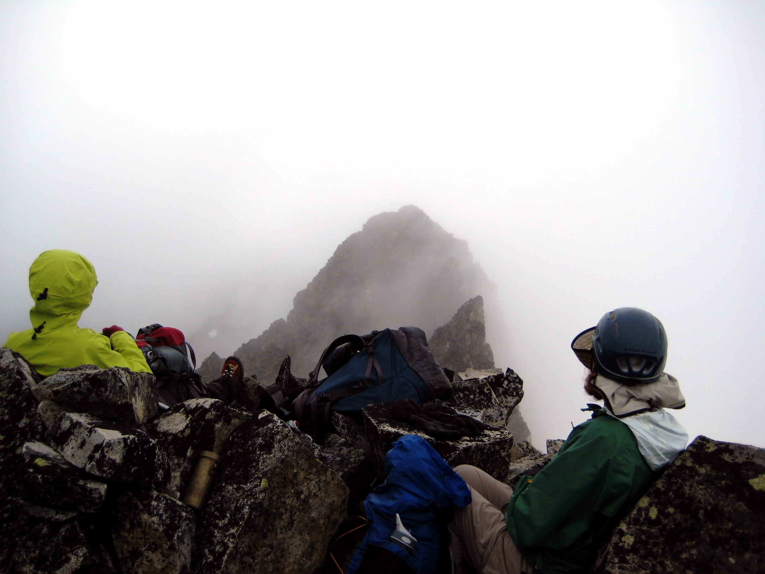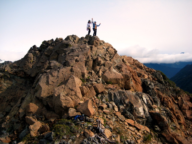 From there, we traversed over and upward through fog and light rain until somehow stumbling onto the summit of The Cradle’s south peak (5.2 hours from camp).