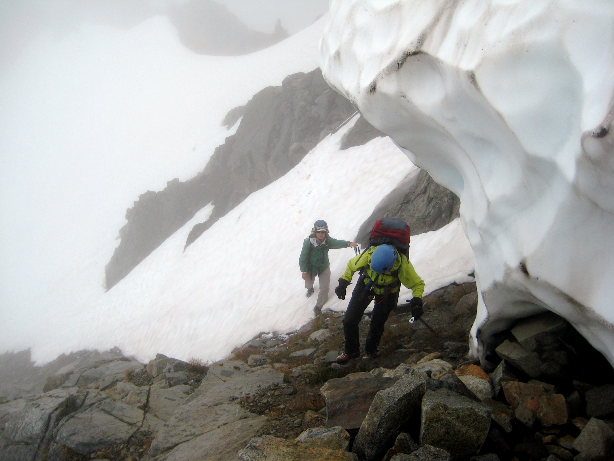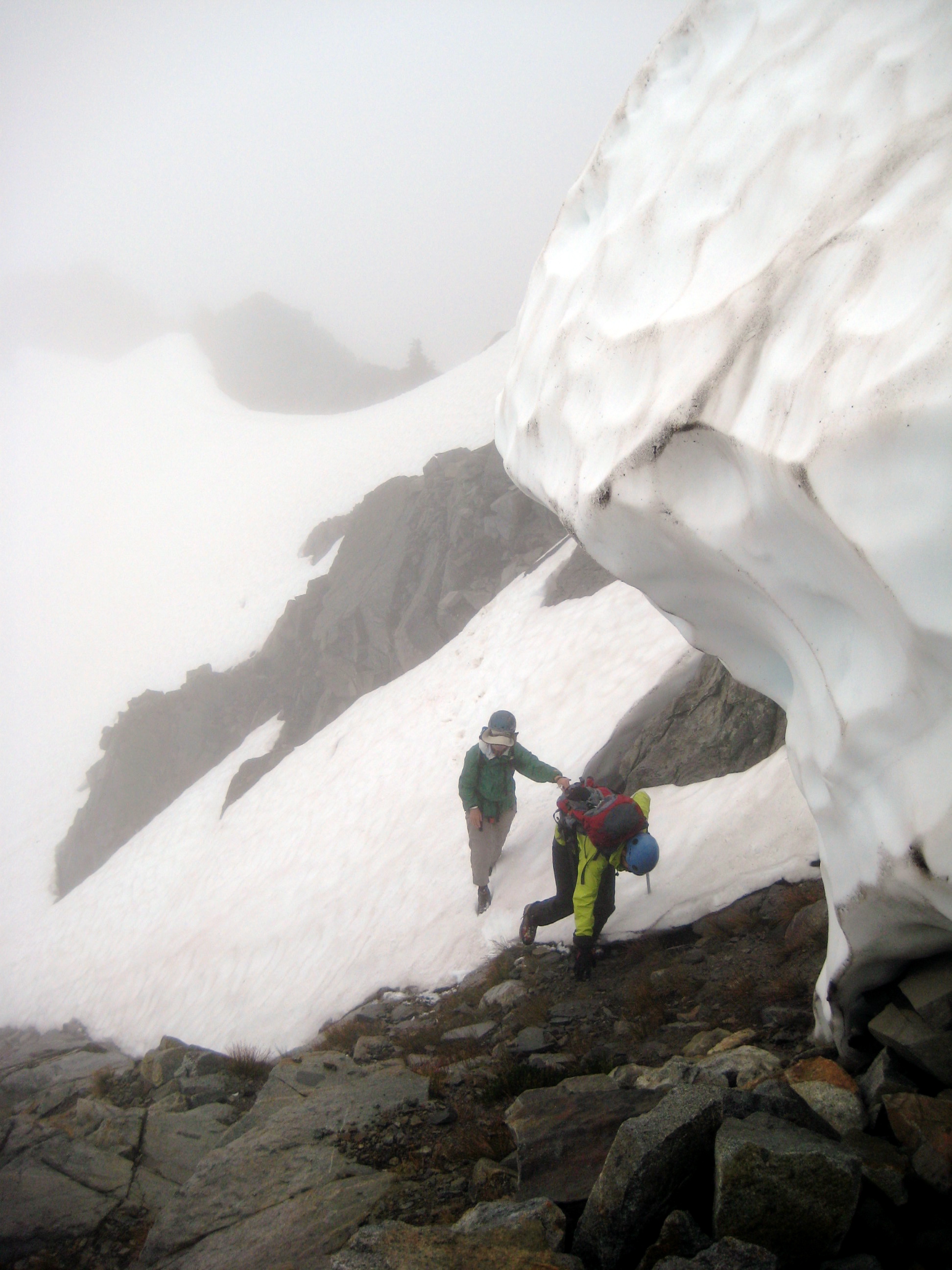 Eventually, the north peak poked its head out of the clouds, so we made a modest effort to traverse over to it. I had hoped this would be my 30th anniversary ascent of both Cradle peaks (following a foggy-day climb in 1978), but lack of time and visibility conspired against us. Is it always foggy on The Cradle or what?