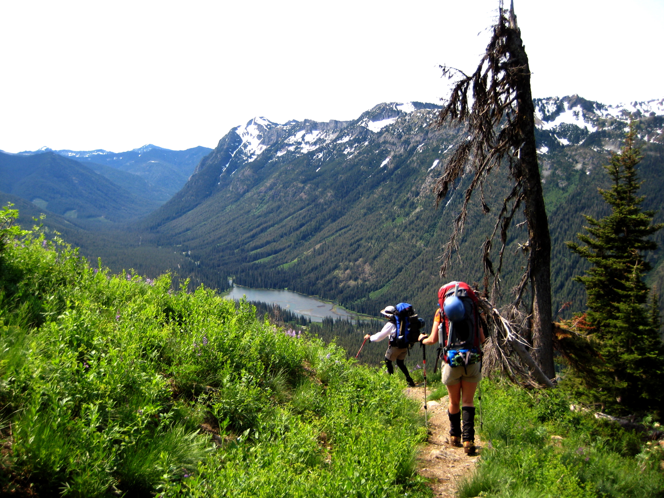 In late morning, we began dropping to the trailhead. It felt like summer when we reached our vehicle at the end of this mostly fun, sometimes dreary, holiday-weekend adventure.