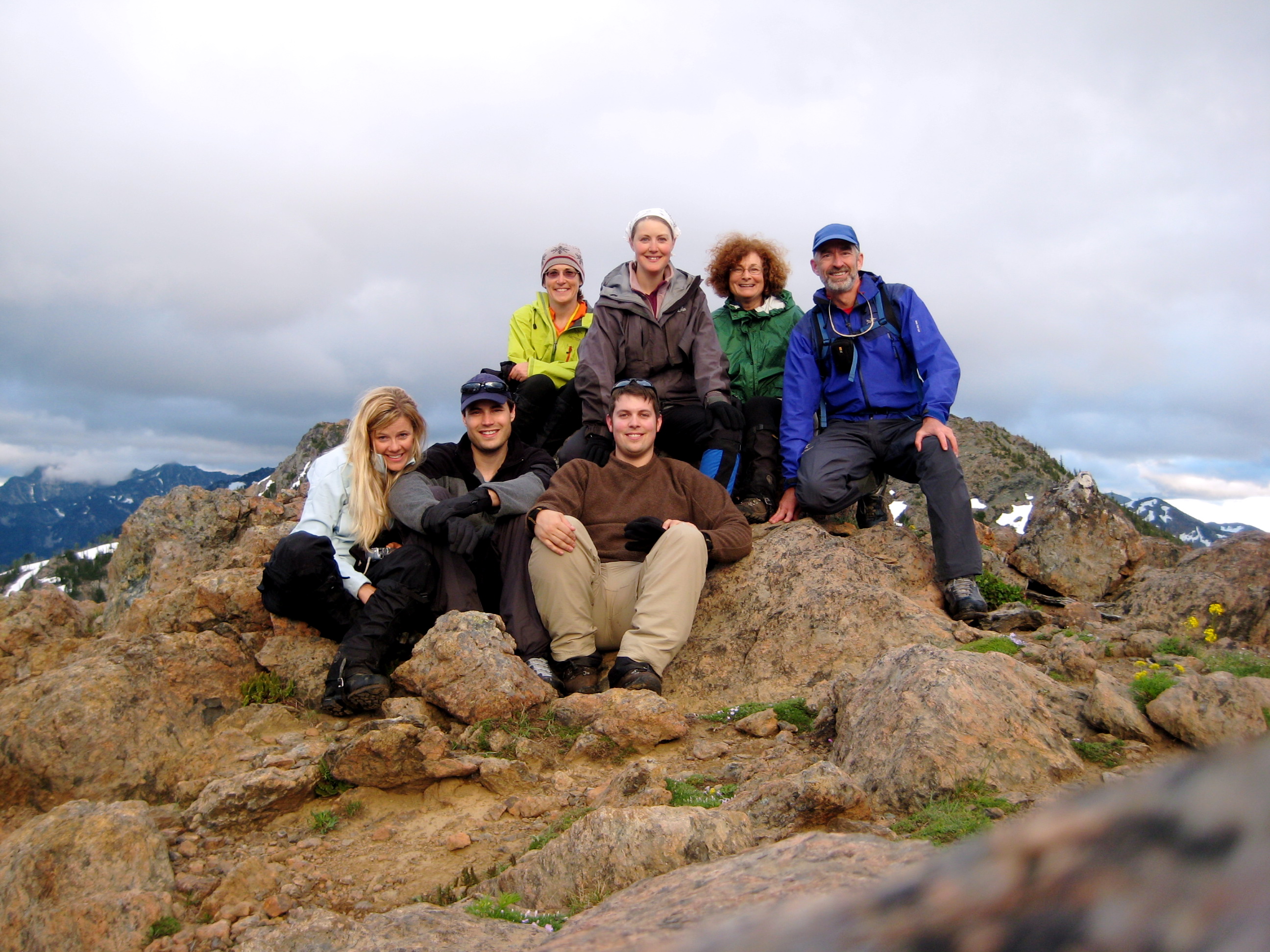 I spent Independence Day Weekend in the Cle Elum Mountains and Upper Icicle Mountains with Eileen, Beth, Mike M., Kerry, Greg, and Sarah. Our individual schedules and goals differed considerably: Eileen, Beth, and I were out for three days and hoped to tuck in three summits, whereas Mike, Kerry, Greg, and Sarah were out for two days and really didn’t care which summits they climbed.