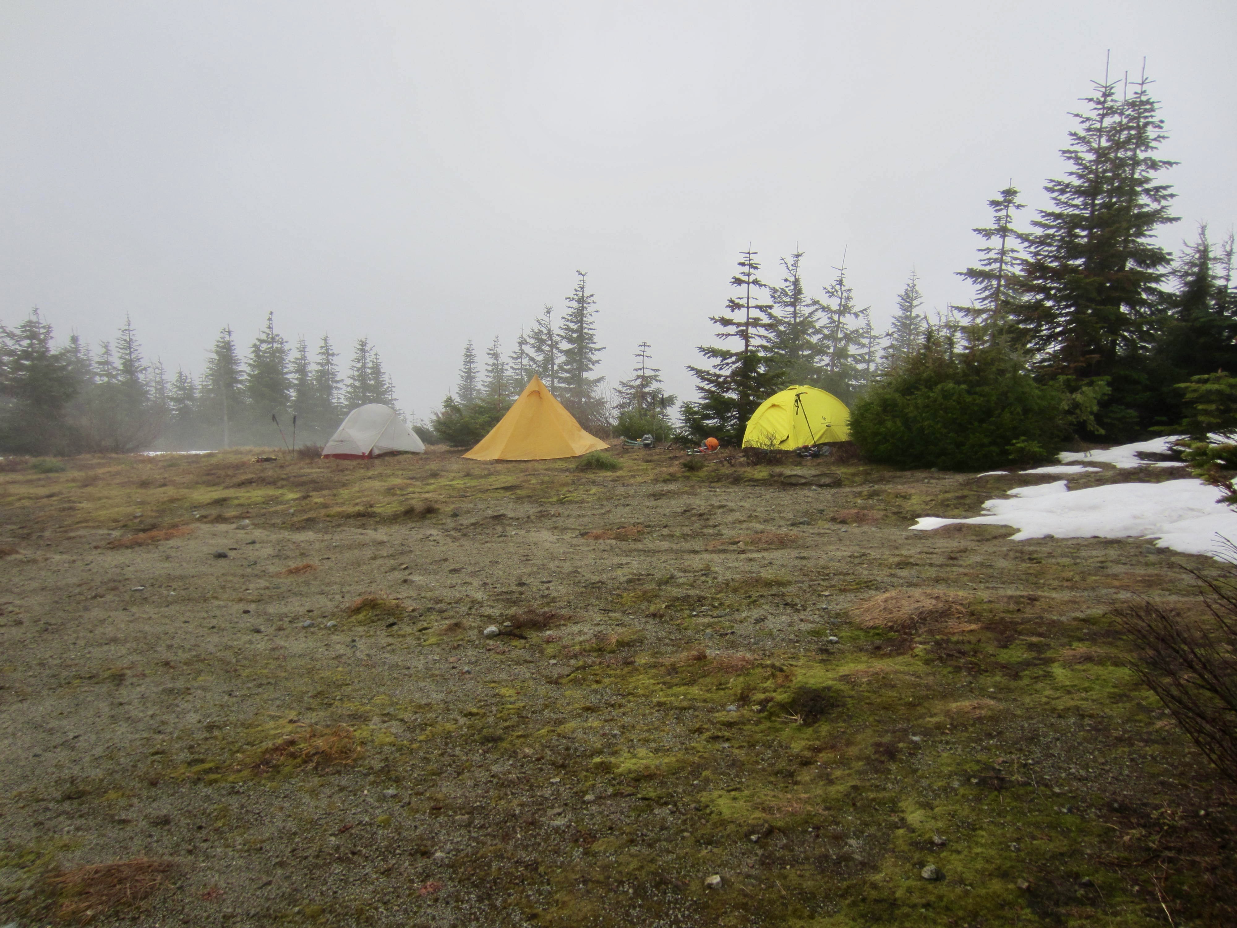 We all assembled back in camp by 6:00pm (4.2 hours + 1100 feet from turnaround point), feeling satisfied by our successful summit, disappointed by our unsuccessful attempt, and wiser for the effort. Brooke, Kellie, and Andrew were eager to get home, so they packed up and headed out at 7:00pm. Meanwhile, Eileen and I enjoyed a leisurely dinner and a rain-free night in camp.
