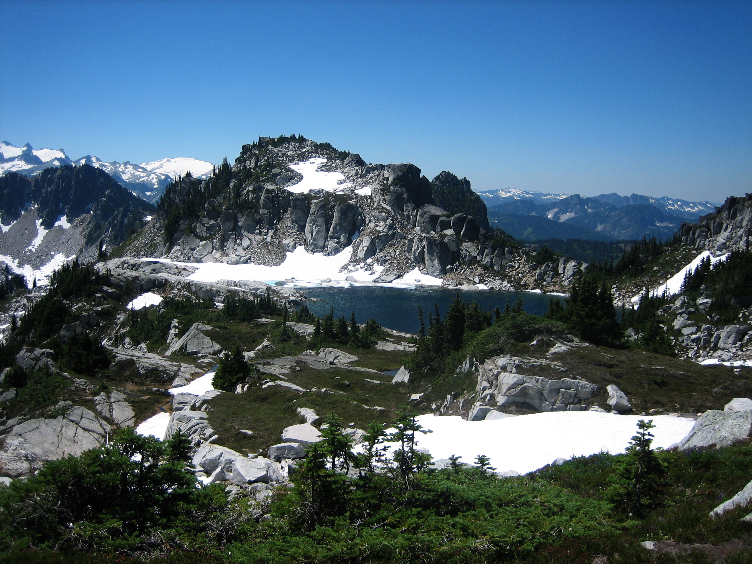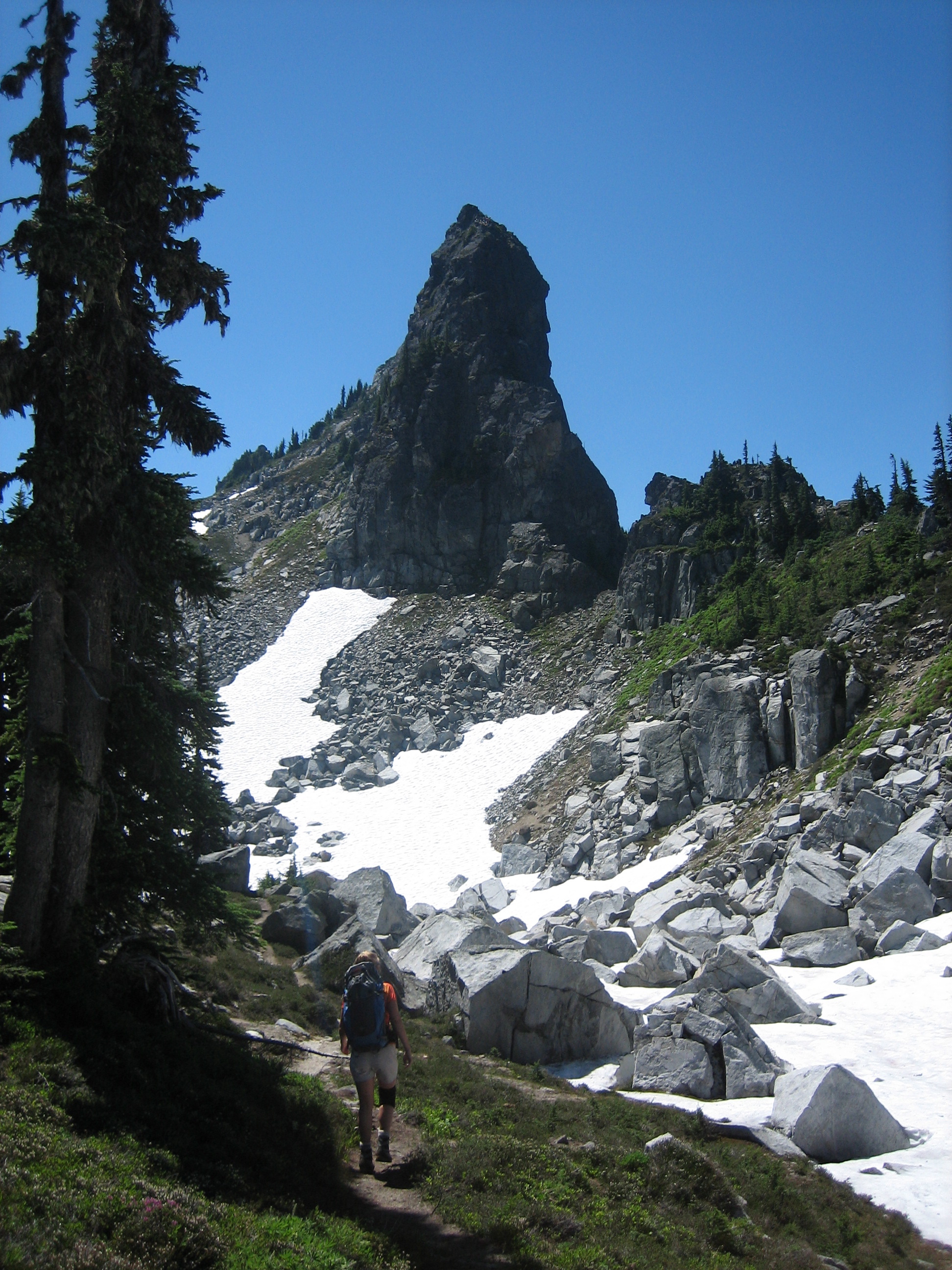 We hiked to Trap Pass via Tunnel Creek and Hope Lake, then followed the footpath (about 20% snow-covered) around to the saddle above Thunder Mtn Lakes.