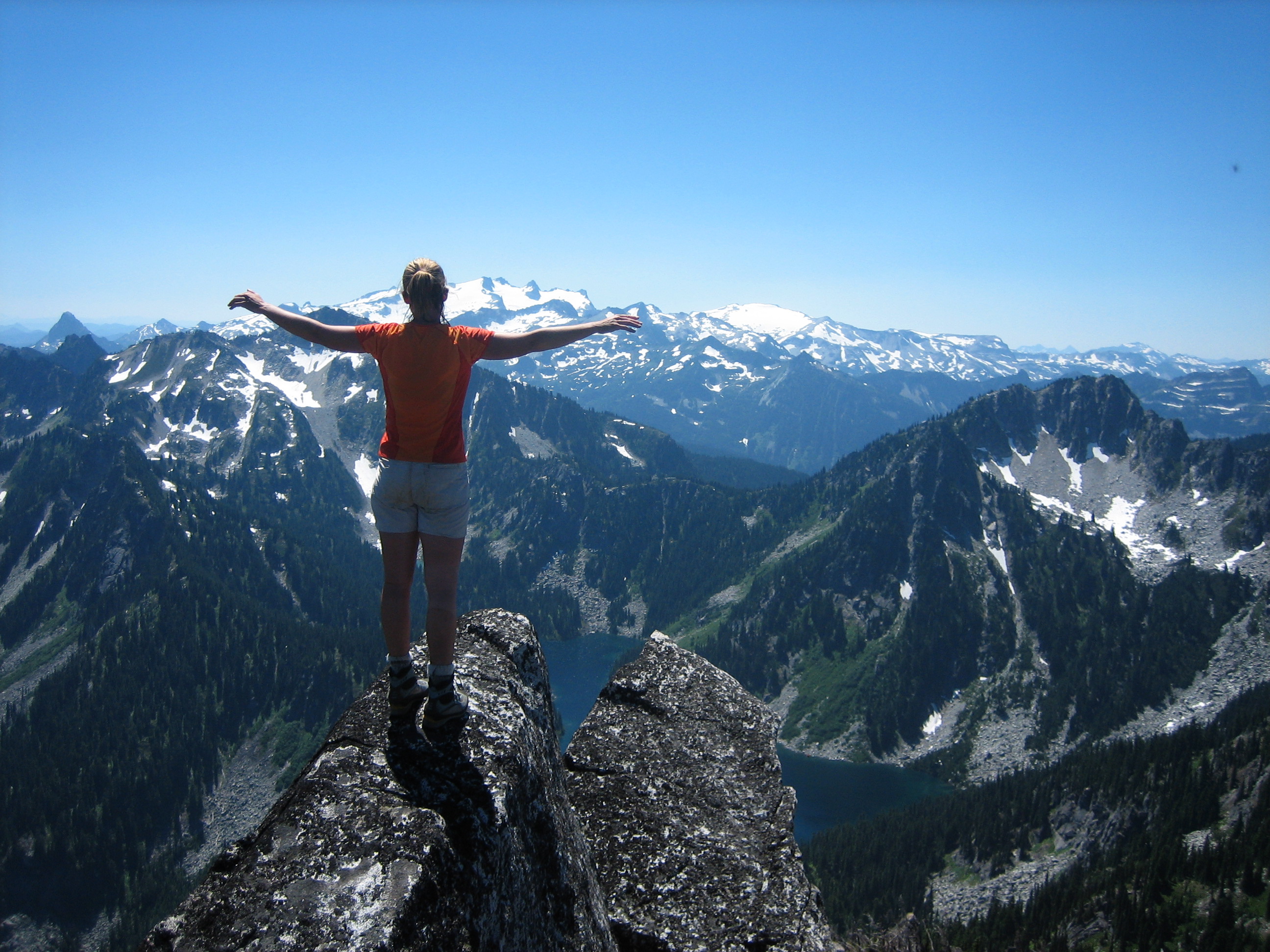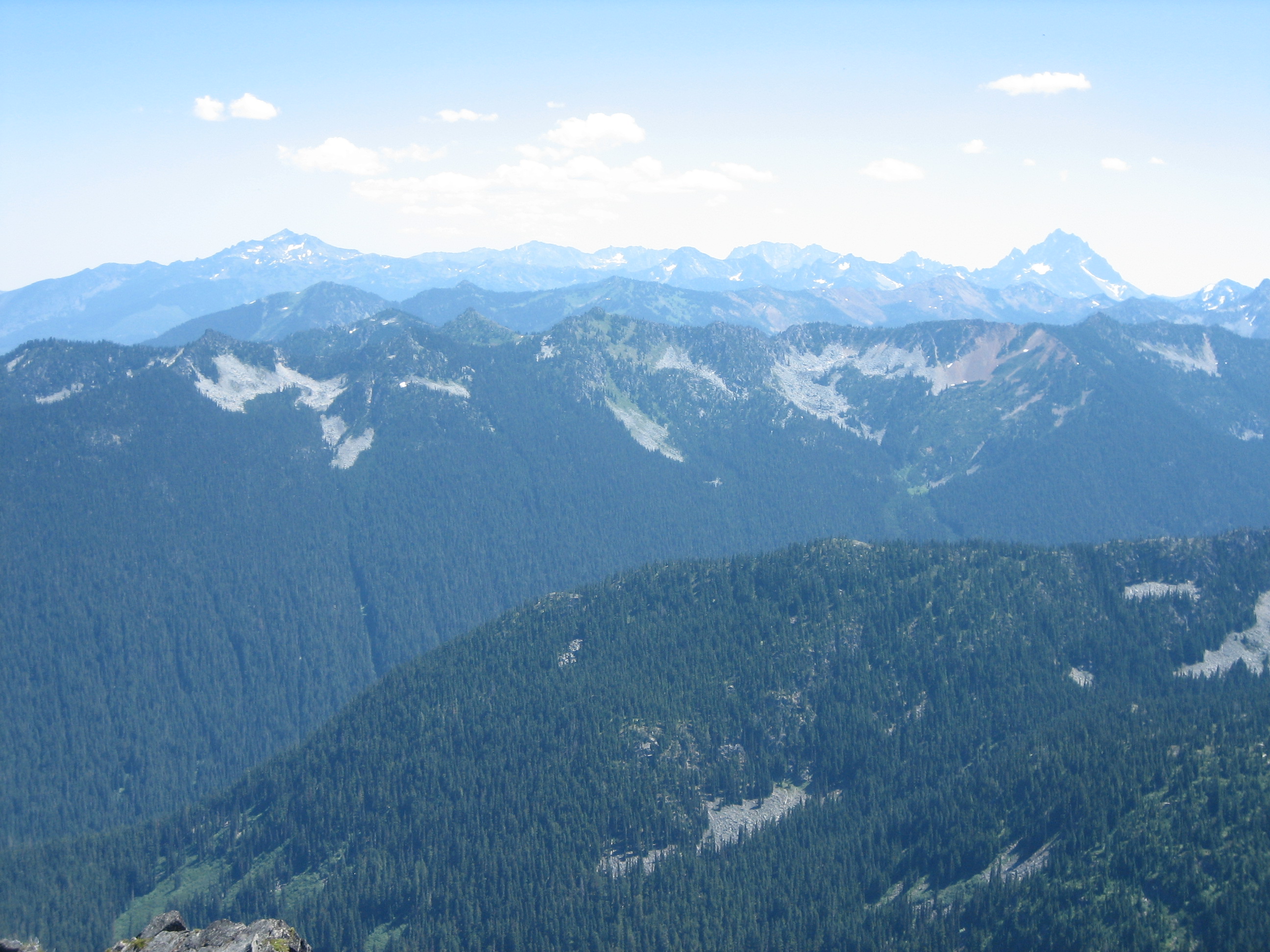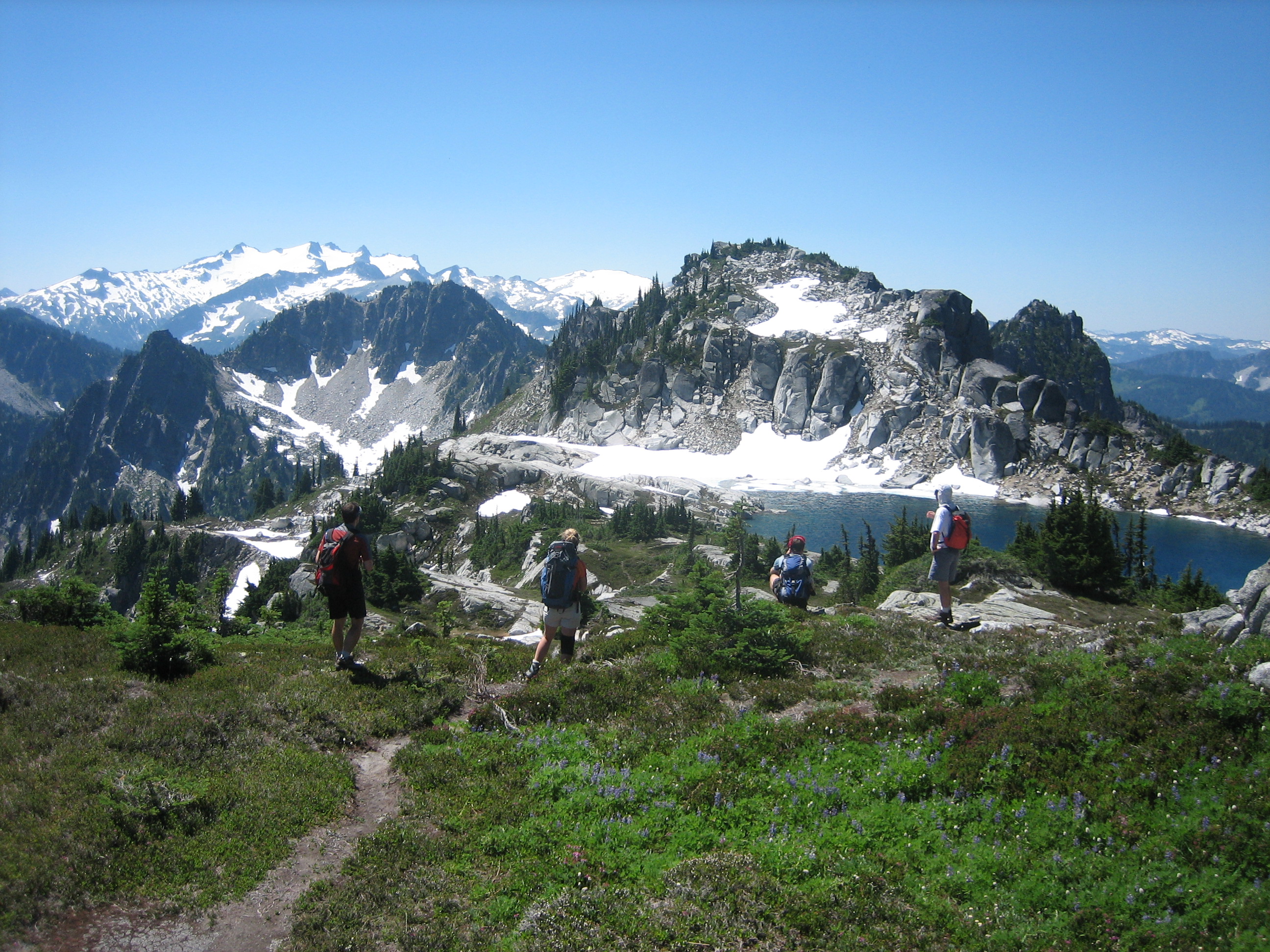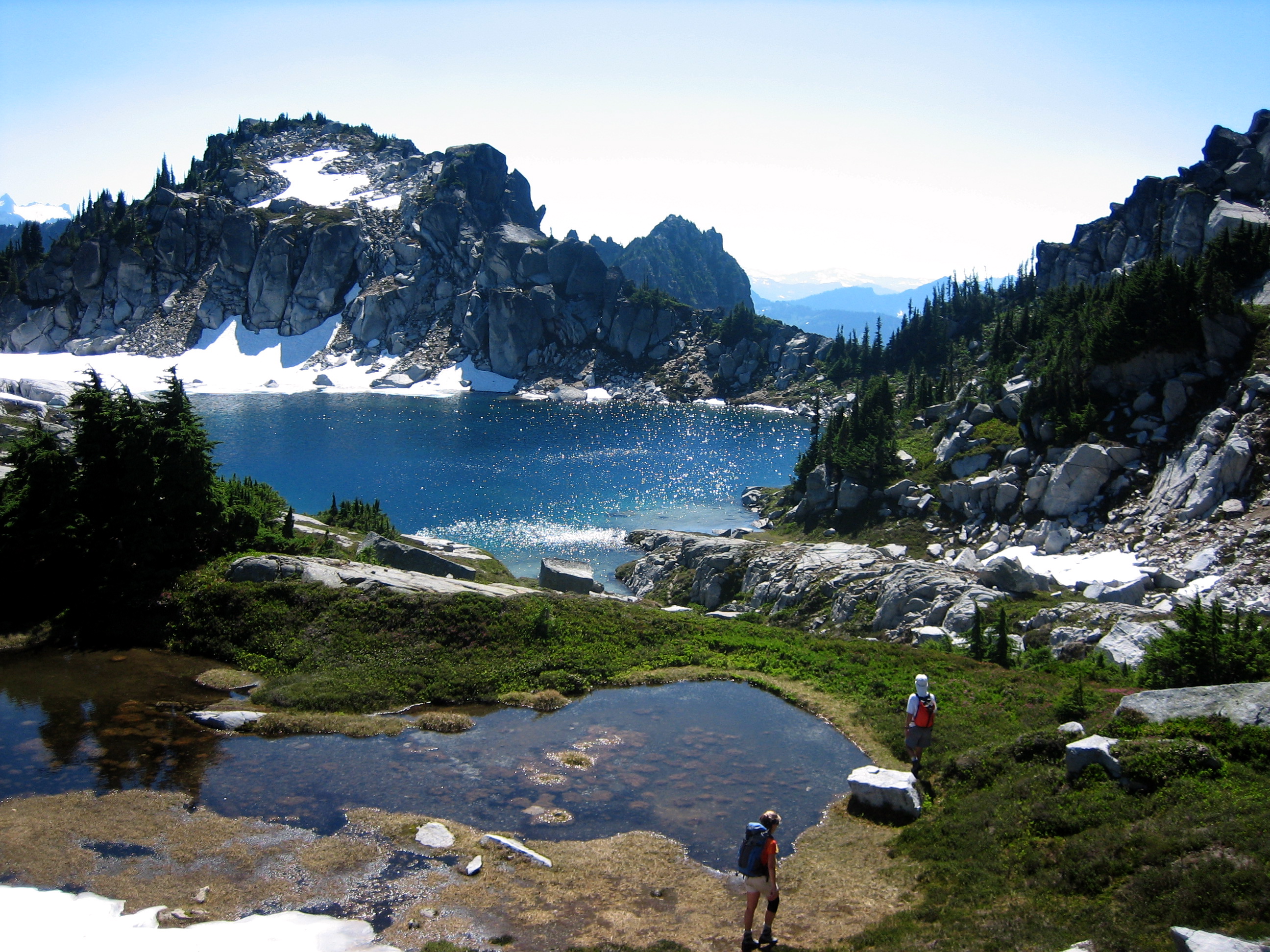 There were many familiar names, and a running debate about whether to call this Thor Peak or Wolverine Peak. Seems as though the Viking god of thunder and rain is winning. We hung out for 45 minutes before the attraction of Thunder Mtn Lakes pulled us off the summit.