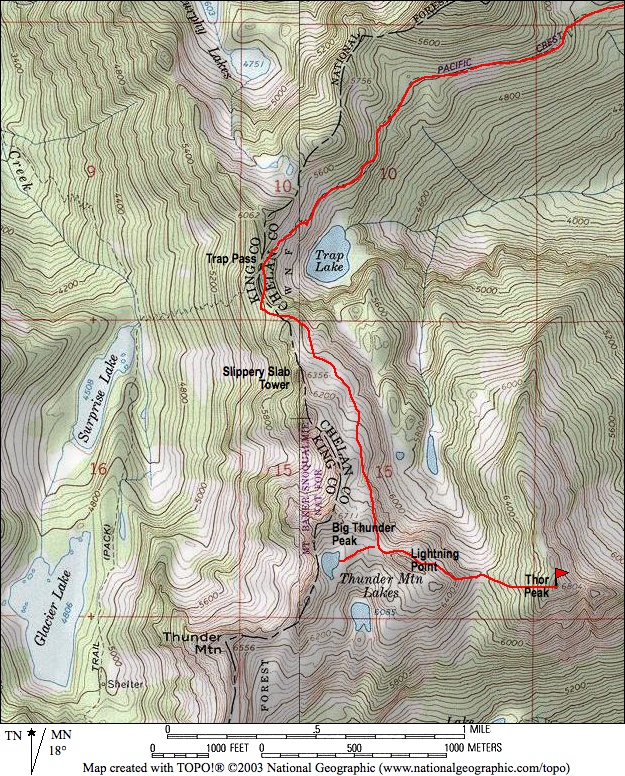 Way Points: Tunnel Creek & Hope Lake & Trap Pass & Slippery Slab Meadows & Thunder Mountain Pass & Thor Saddle (trail hike & rock scramble)