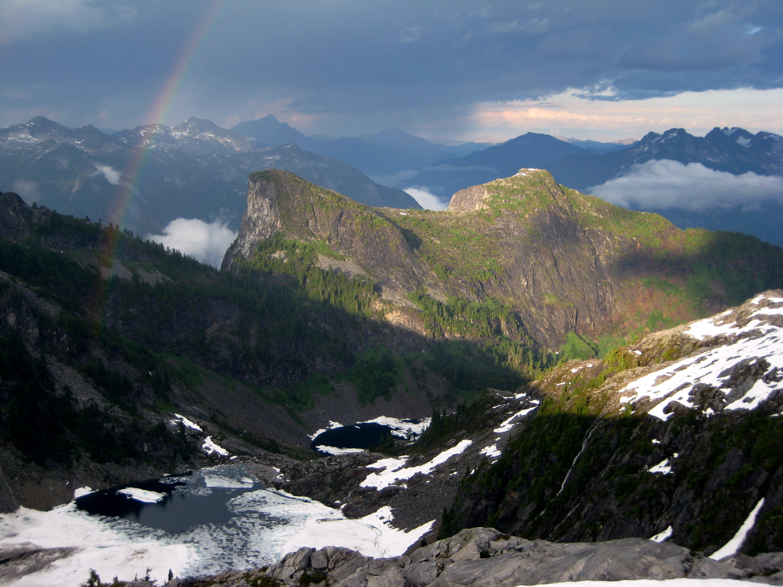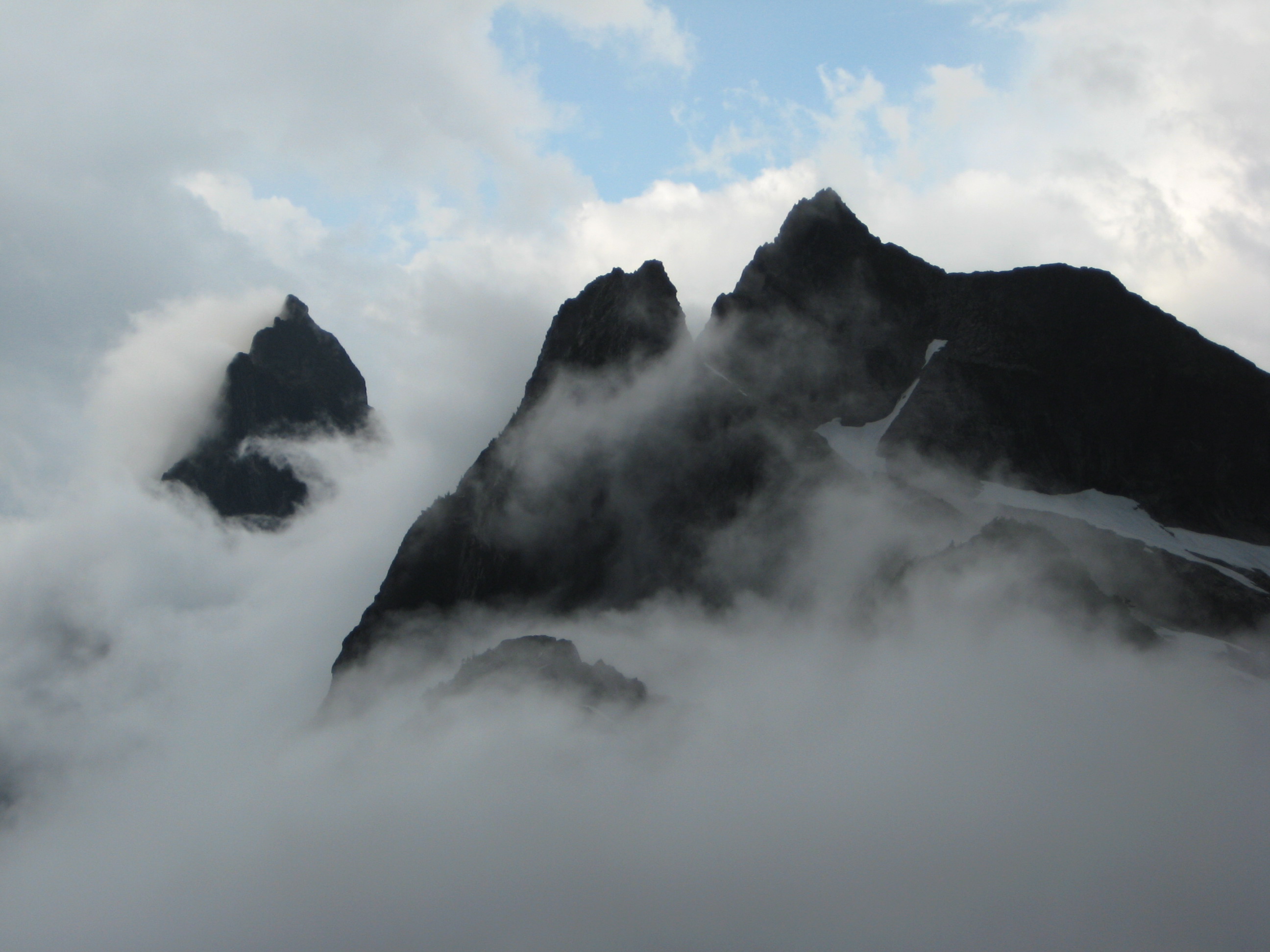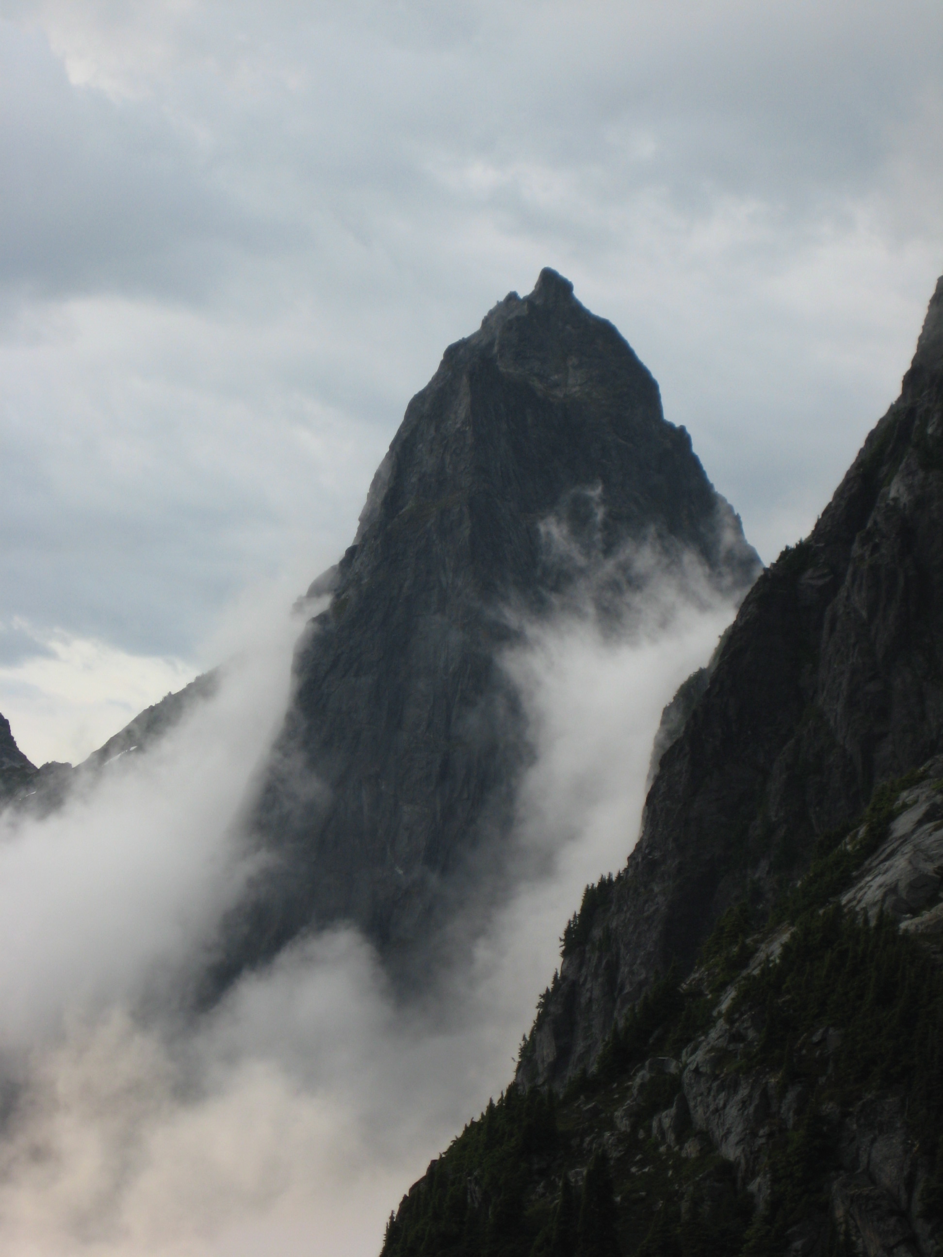 Here are some photos from last weekend’s climb of Thornton Peak with Eileen and Fay. We hiked in via Thornton Lakes and camped on a 6100-foot rock knob just south of Thornton Pass. The theme for our trip was thunder, lightning, rain, hail and wind—all of which we had in spades.