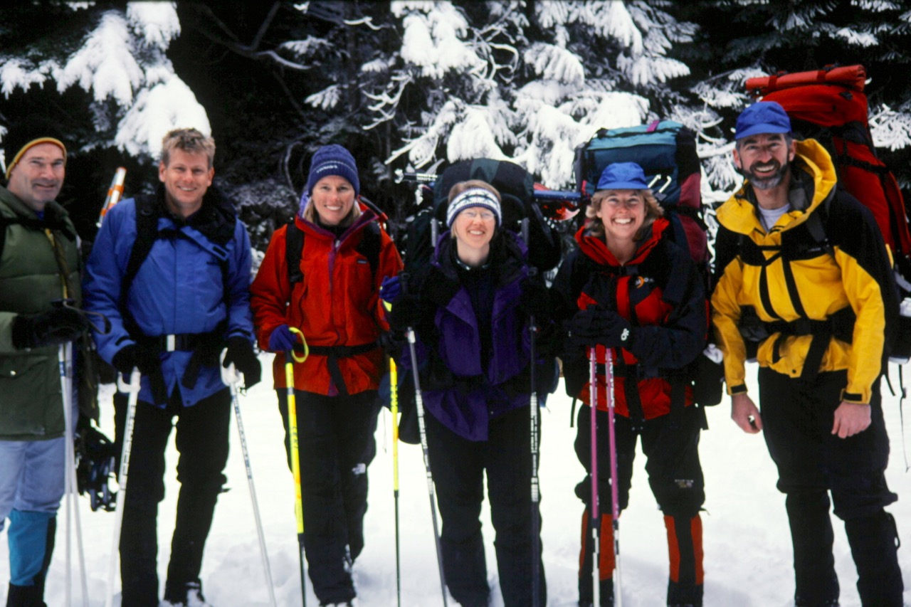 Laura, Dee, Henry, John, and Sarah joined me for a snowshoe trip to Mowich Lake at Mt. Rainier National Park. We parked at the Paul Peak Trailhead, where the winter gate is now closed, and began booting up the Mowich Lake Road. The snowpack increased steadily, such that snowshoes were needed after the first couple of miles.