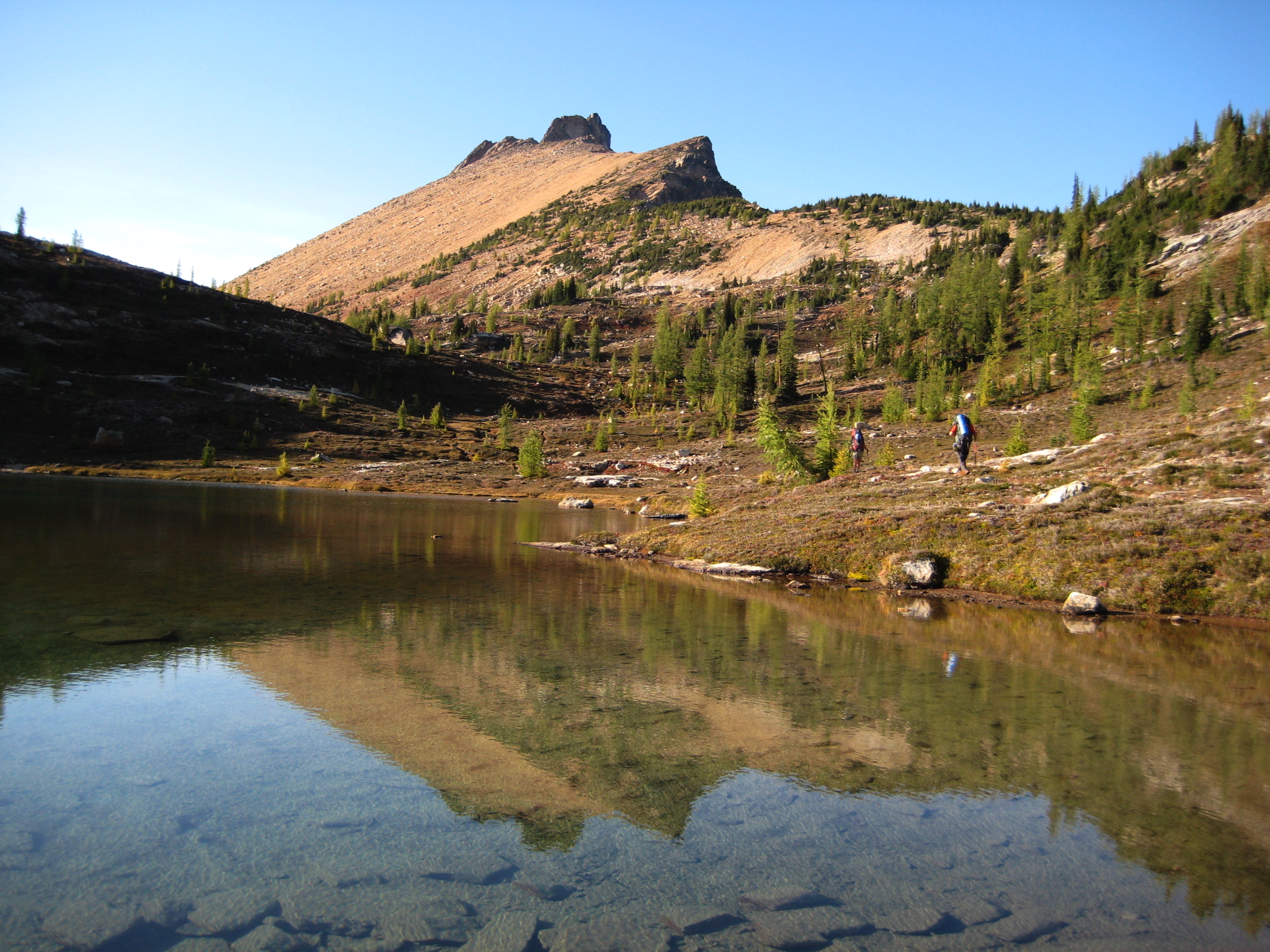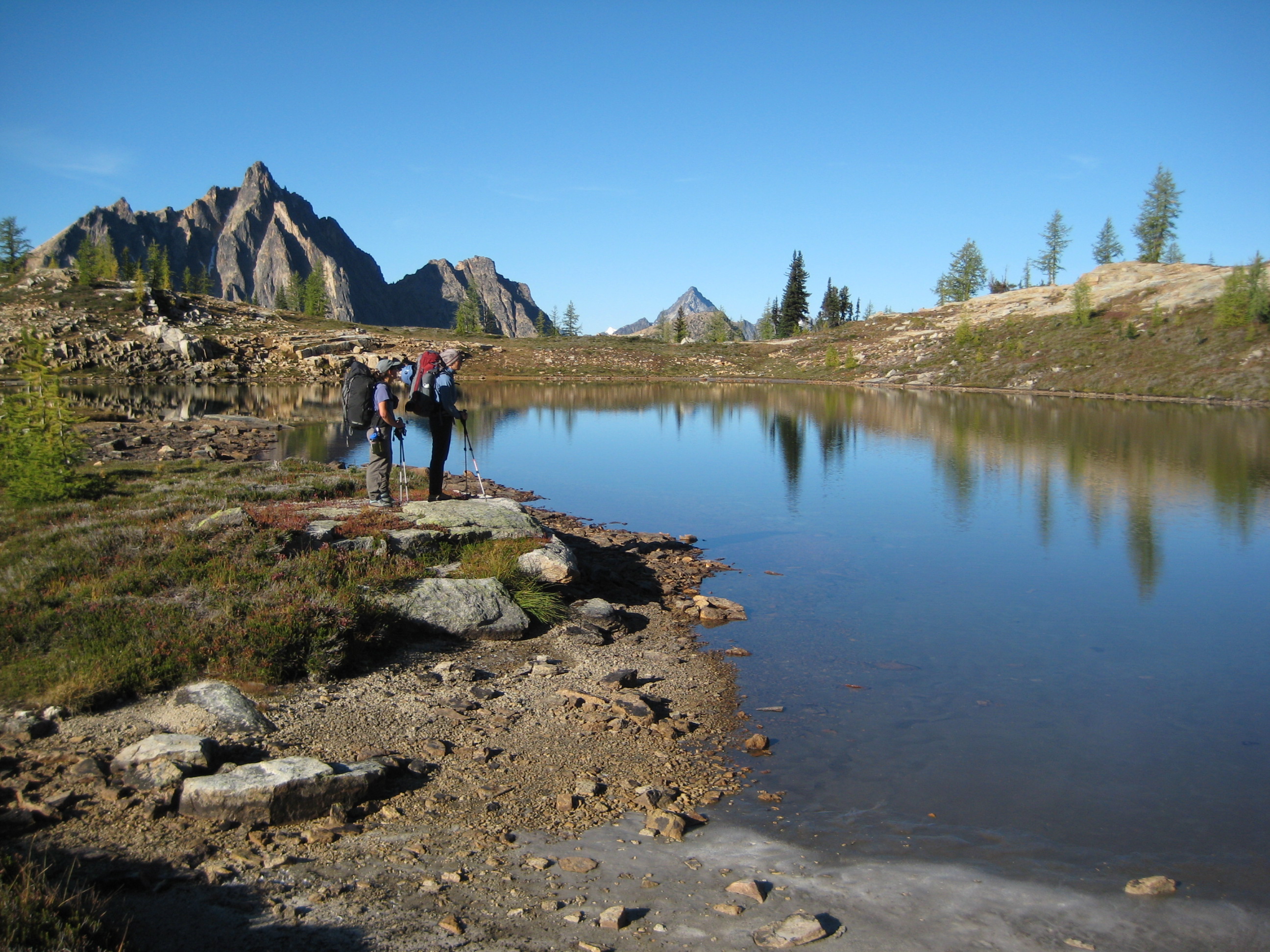 On Sunday, we hiked out at a leisurely pace. The day turned out to be quite warm—almost summery by the time we reached the trailhead (5.5 hours from camp). We estimated that, at this rate, it will be another week or two before the larches reach full color.