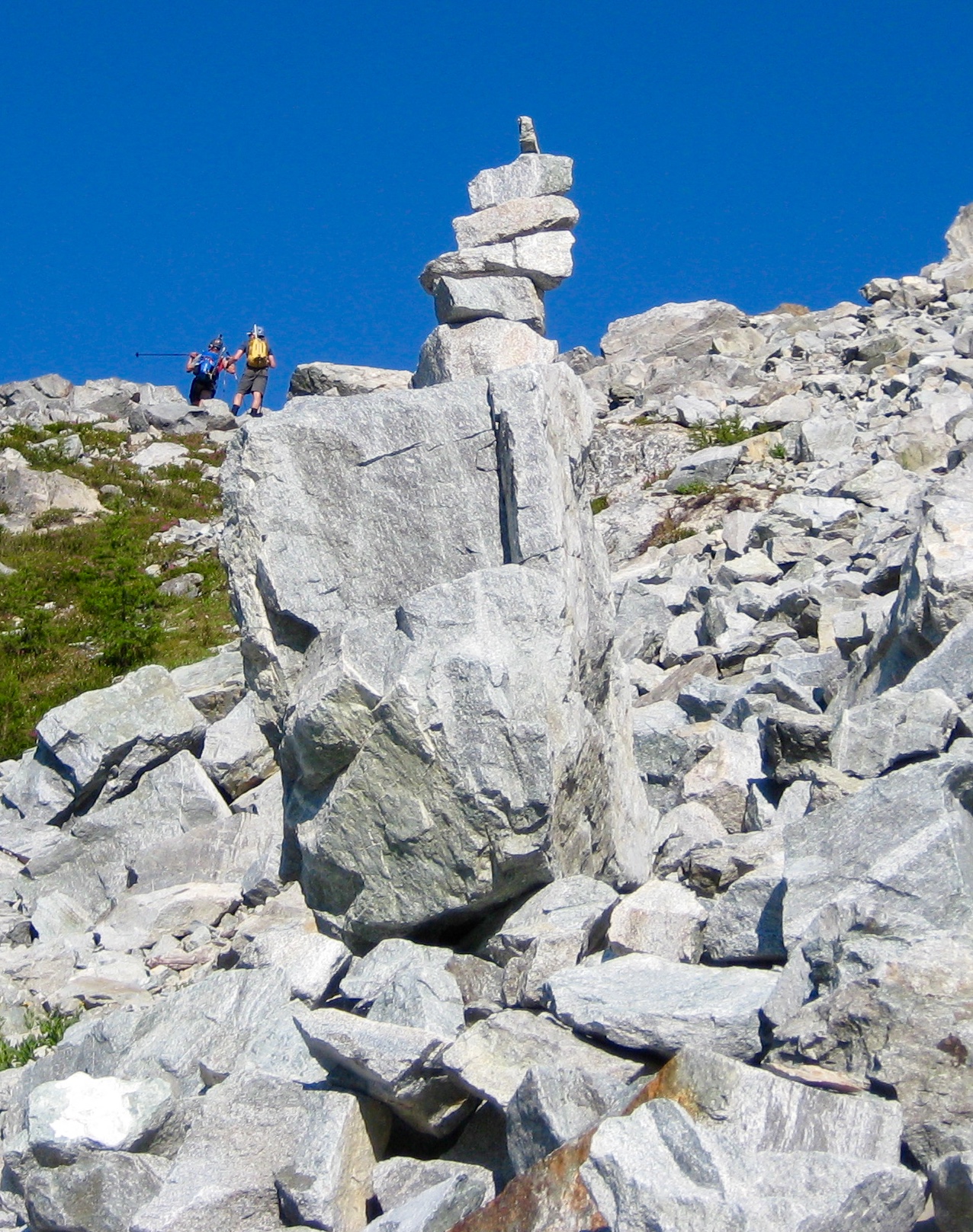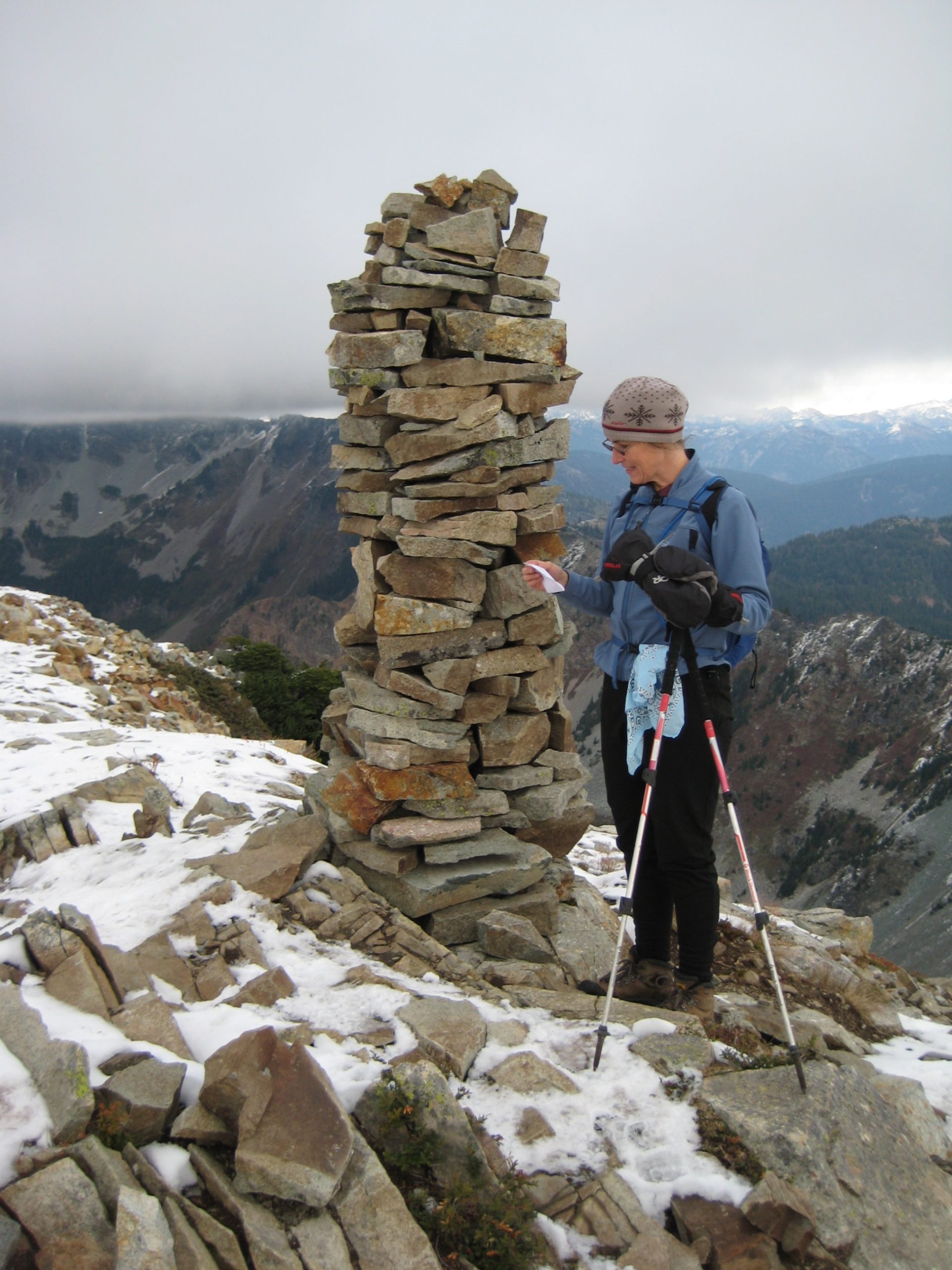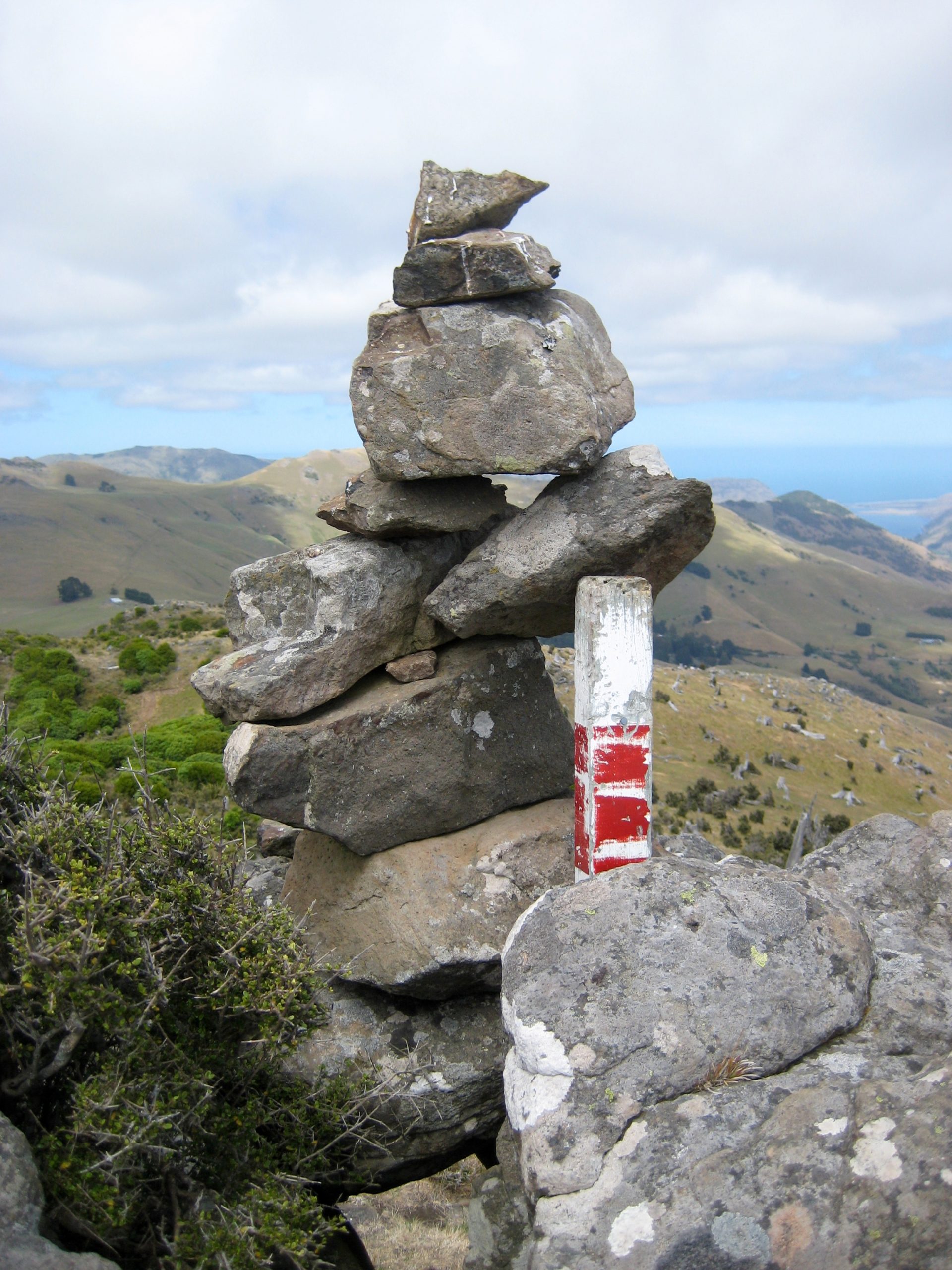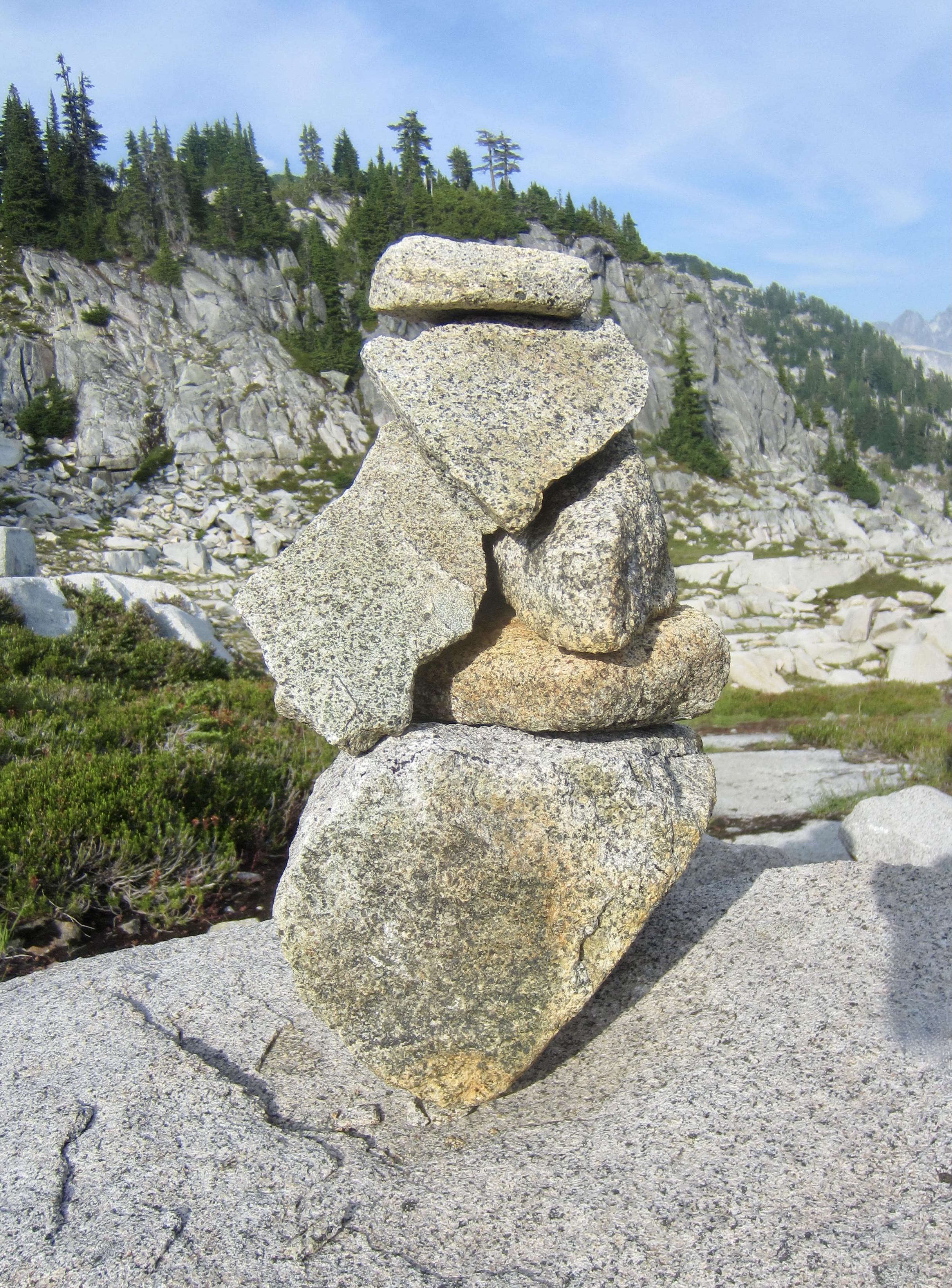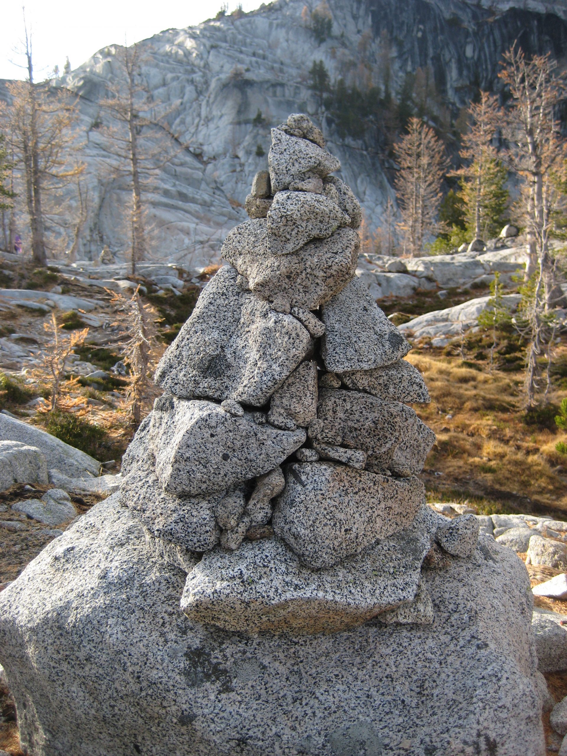 A photographic collection of various stone cairns, stone ducks, directional arrows, trail emblems, mileposts, and other route markers that I’ve encountered in my mountain travels.