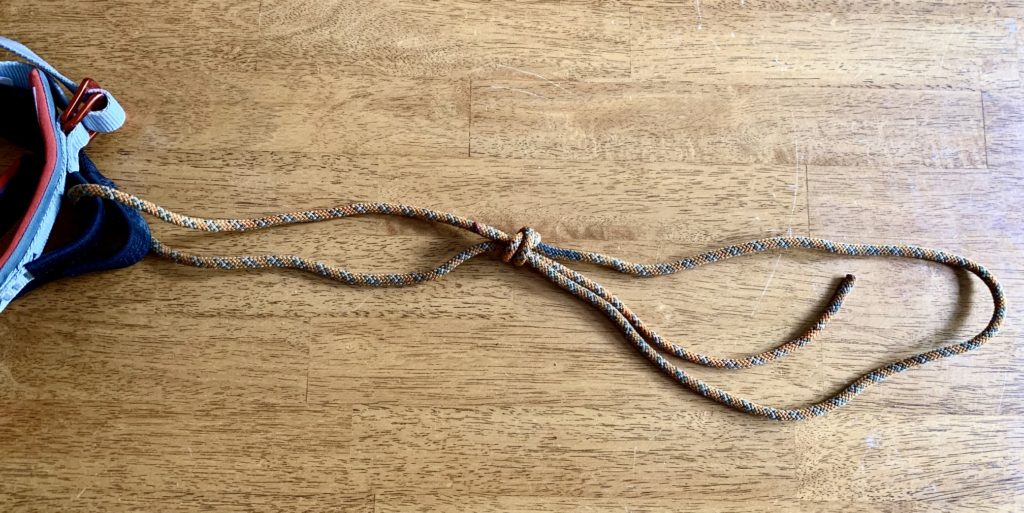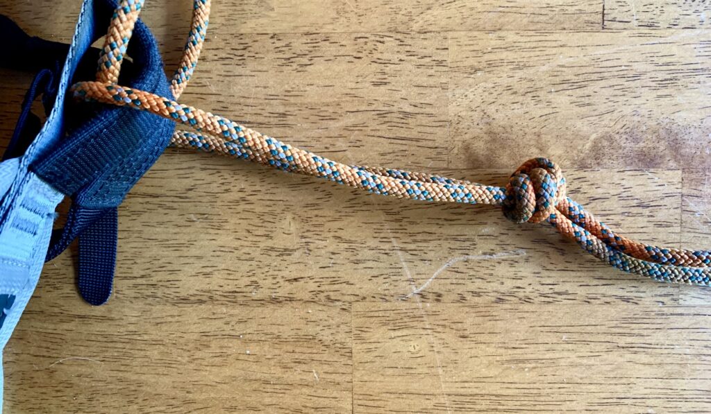 First Overhand Knot Tied Near Harness
