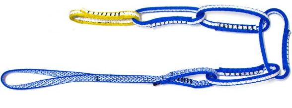 Before continuing, let’s clarify some terminology.  Although Metolius’ trade names Personal Anchor System and PAS have come to be used rather generically for all related products, these terms are really misnomers.  Such products are actually personal tethers rather than personal anchors.  In climbing situations, an anchor consists of something firmly affixed to a mountain or crag, such as a bolt and hanger drilled into a rock face, a piton driven into a crack, a sling tied around a tree or boulder, an ice screw inserted into a frozen waterfall, or a snow picket hammered into a glacier.  A tether, on the other hand, is a short length of webbing or cord that connects a climber to an anchor. We are clearly talking about tethers in this context.