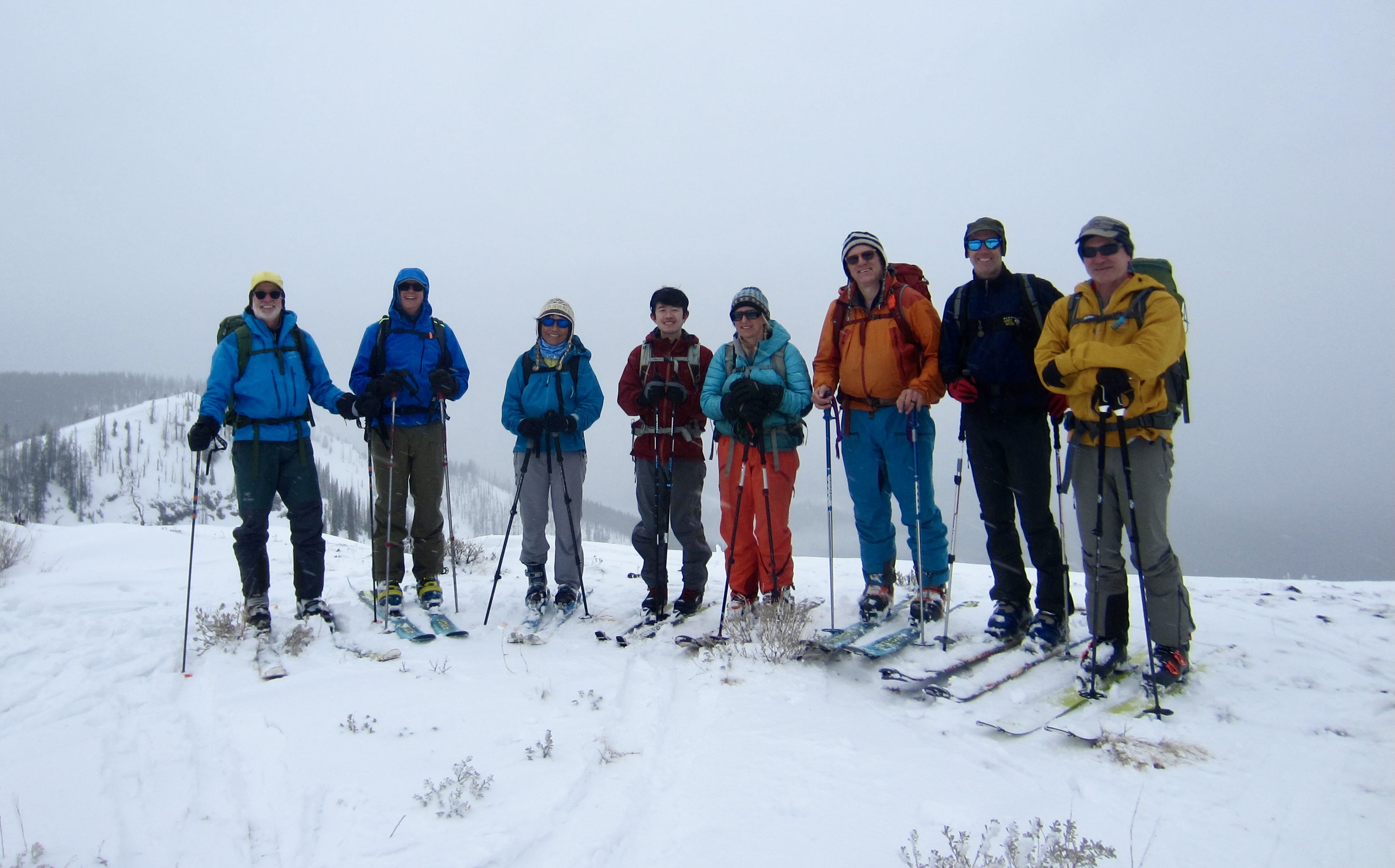 On a Sunday of unsettled weather, Eileen, Yoko, Debra, Todd, Mark, Kevin, Alisa, Jue, and Keith joined me for yet another quasi-annual installment of the Tronsen Head Loop in the Lower Wenatchee Mountains.  This was my 20th time doing the classic ski tour, dating back to 2001, and I couldn’t help but reflect back on the large number of different people (57) who’ve accompanied me over the years. I would love to say that we have encountered acres of epic powder during all of these outings, but there have actually been only a few trips with truly good snow. Clearly, I don’t come here for the skiing.