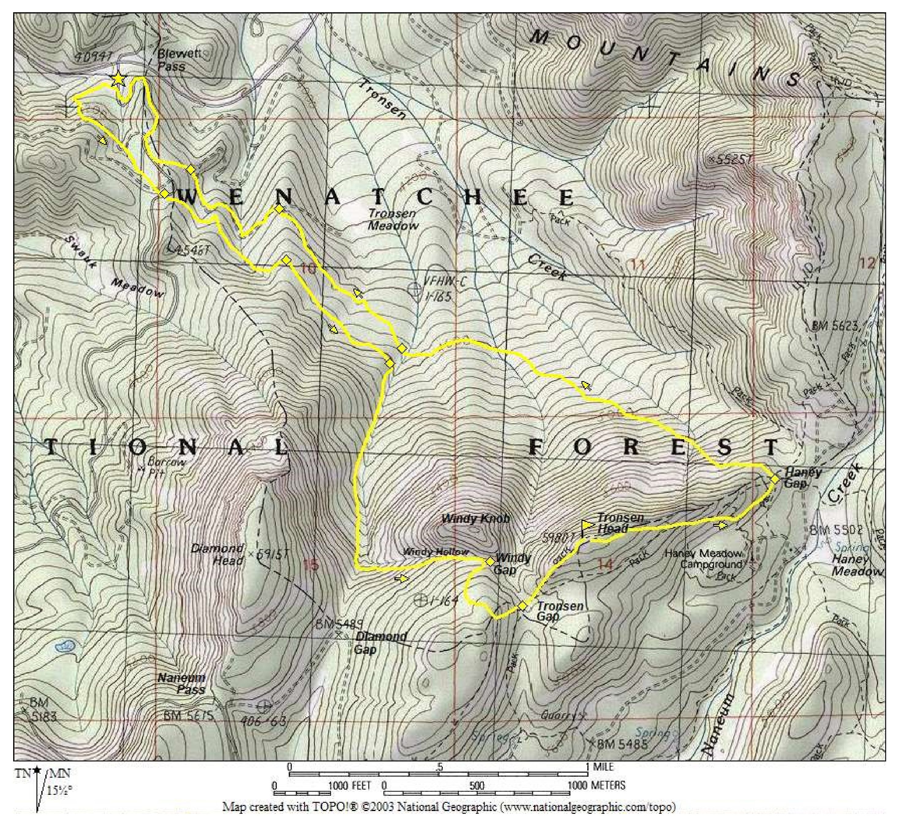 Starting & Ending Point: Blewett Pass Sno-Park on Highway 97 (Elev. 4100 feet)