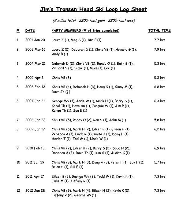 >>> Tronsen Head Ski Loop: Windy Hollow to Haney Gap – January 20, 2001