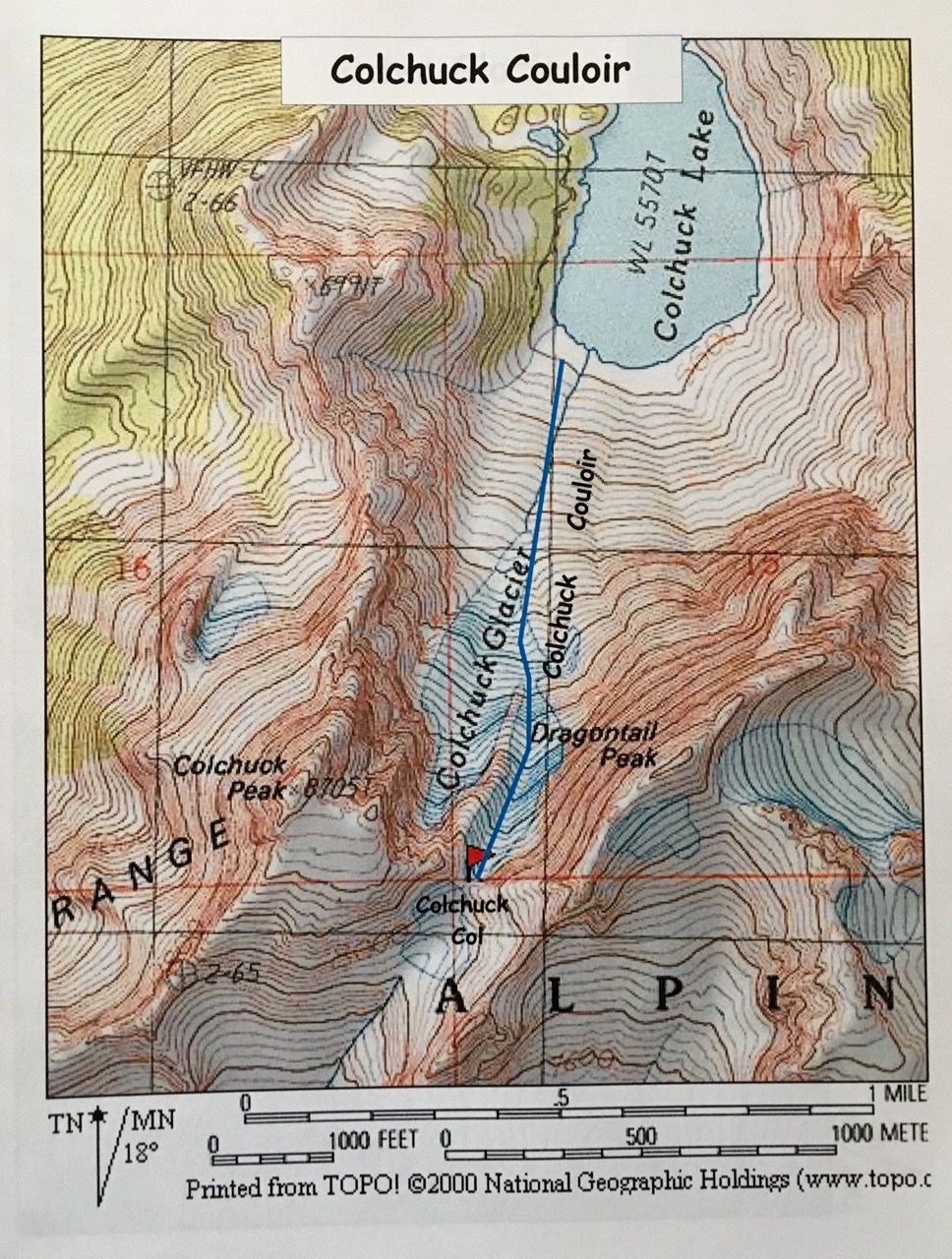 I subsequently selected twelve backcountry descent routes that I regarded as having a widespread classic status among local backcountry skiers. Collectively, these became known as Blue Corn Specials. I then prepared a topographic reference map for each route, along with a brief written commentary. My original document pages are reproduced in the photo galleries below.