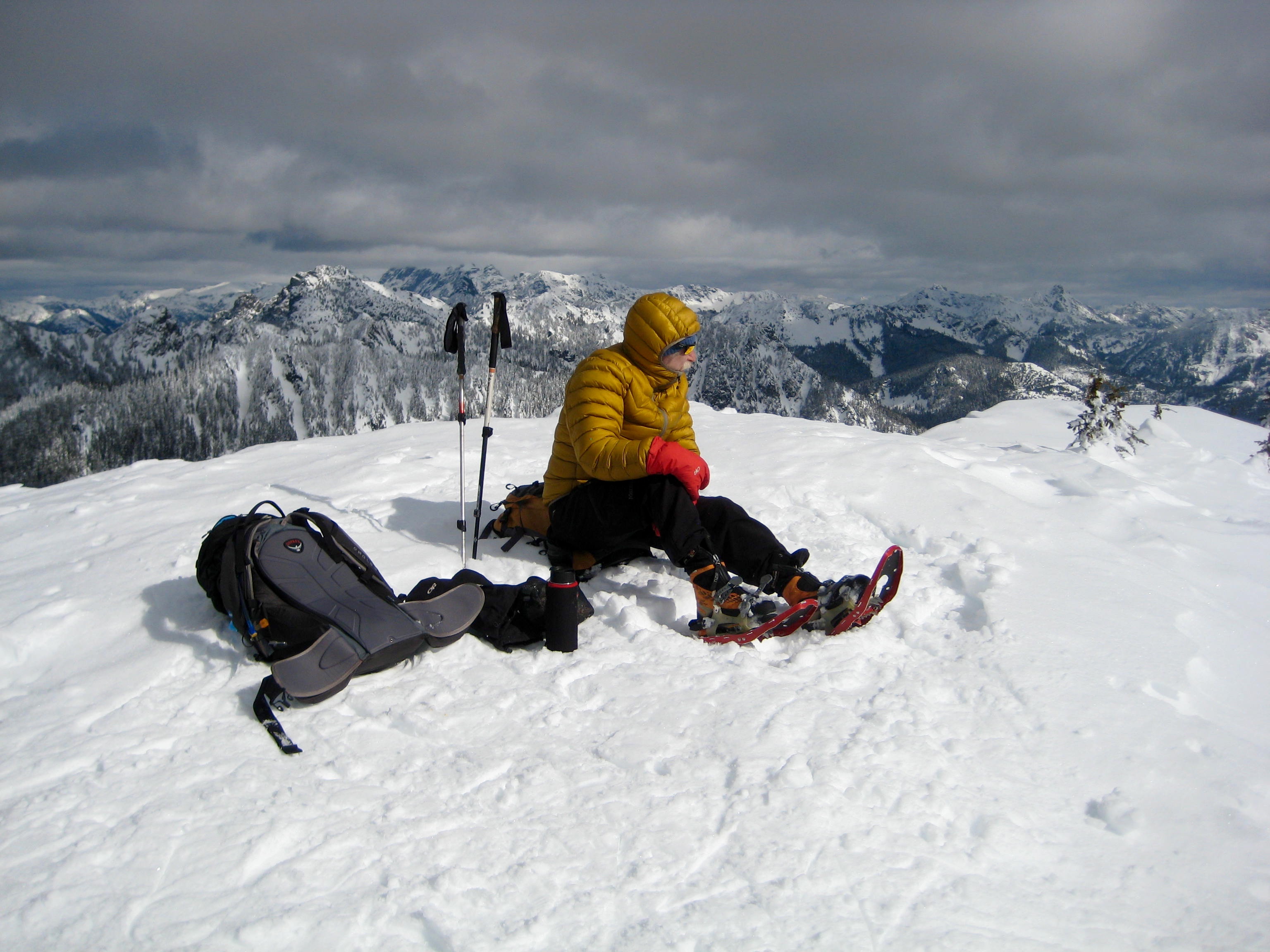 Ira and I teamed up for a snowshoe ascent of West Granite Peak in the Lower Snoqualmie Range. Most of the route to this summit is fairly safe from avalanche hazard, so it is a good destination in all but poor stability conditions—and always a much safer option than the adjacent main peak of Granite Mountain, which is only 63 feet higher.