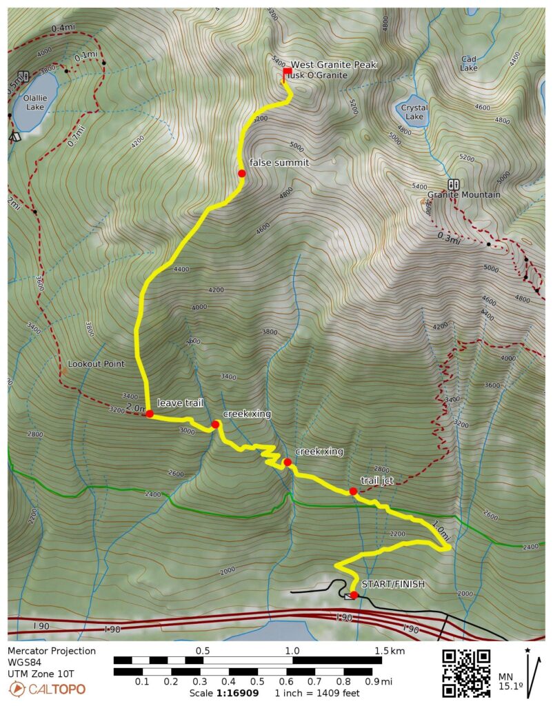 Starting & Ending Point: Pratt Lake / Granite Mountain Trailhead off Interstate-90 at Exit 47 (Elev. 1900 feet)