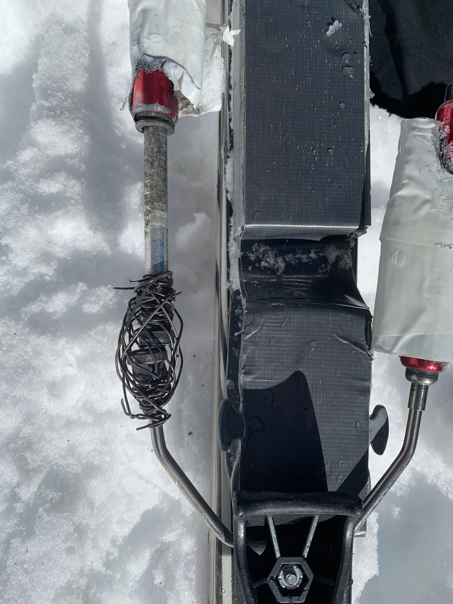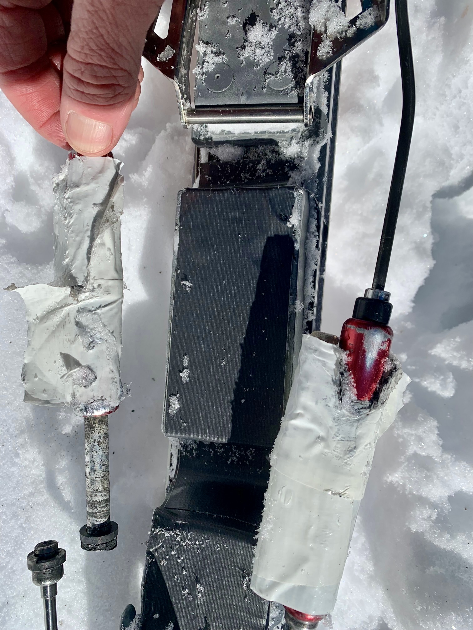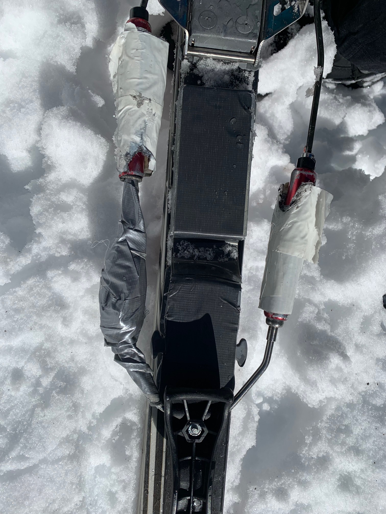 Bailing Wire for connecting broken binding components, ski buckles, skin tips, and other uses. I once had to wire a broken bail onto a G3 Targa binding, and more recently I had to wire together a broken spring cartridge on a Voile Switchback binding (see photos below). Over time, I’ve found that 18-gauge galvanized or stainless steel wire provides a good balance between durability and workability. A 16-gauge wire is more durable but is harder to bend, whereas a 20-gauge wire is easier to bend but not as durable.