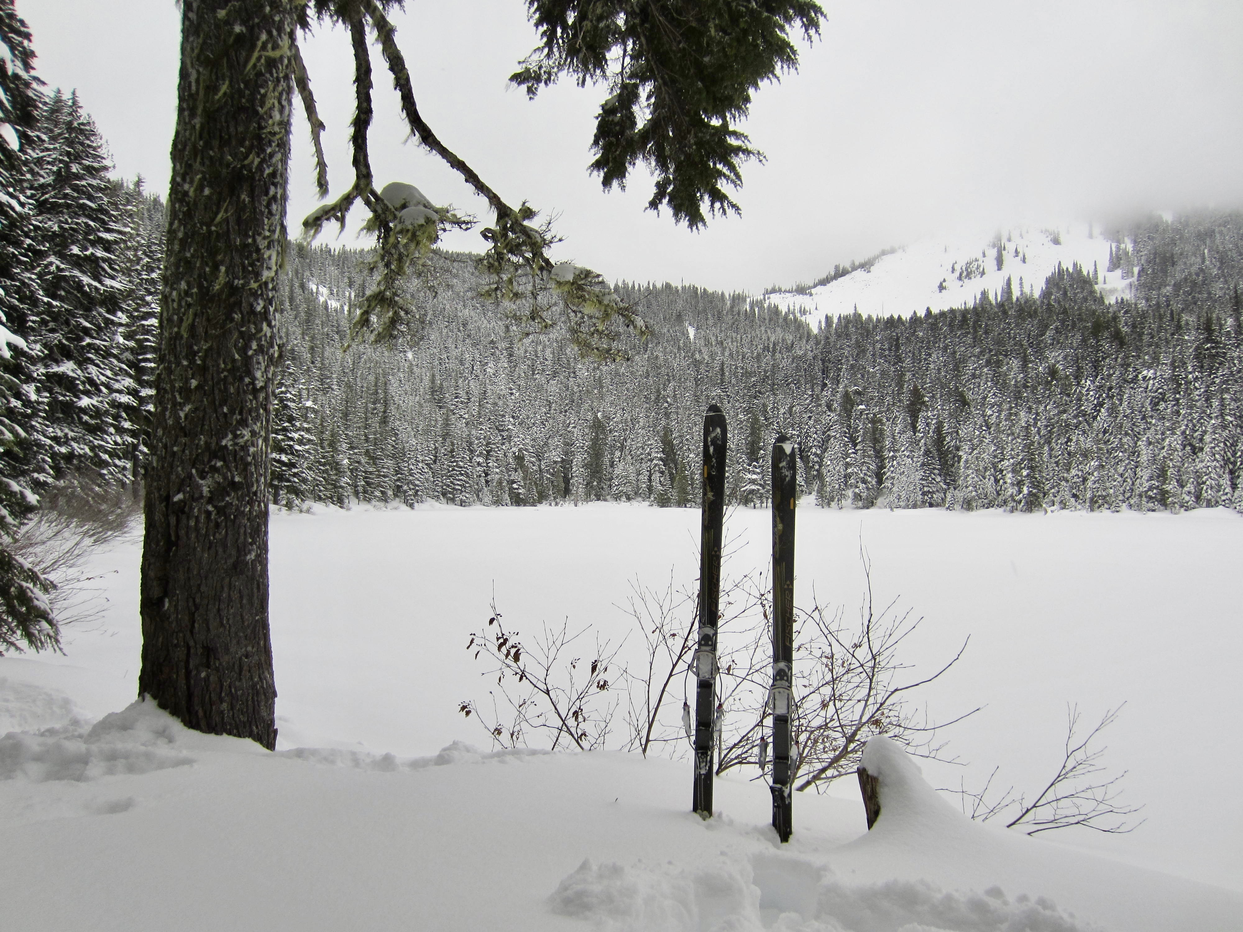 Talapus Lake & Olallie Lake: A moderately strenuous ski tour from the Exit 45 interchange vicinity to Talapus Lake, with the option of continuing another mile up to Olallie Lake. The route follows a combination of ungroomed roads and hiking trails through dense forest; good navigation skills are needed. Approximately 8.0 to 12.0 miles + 1600 to 2200 feet round trip, depending on starting point and destination chosen.