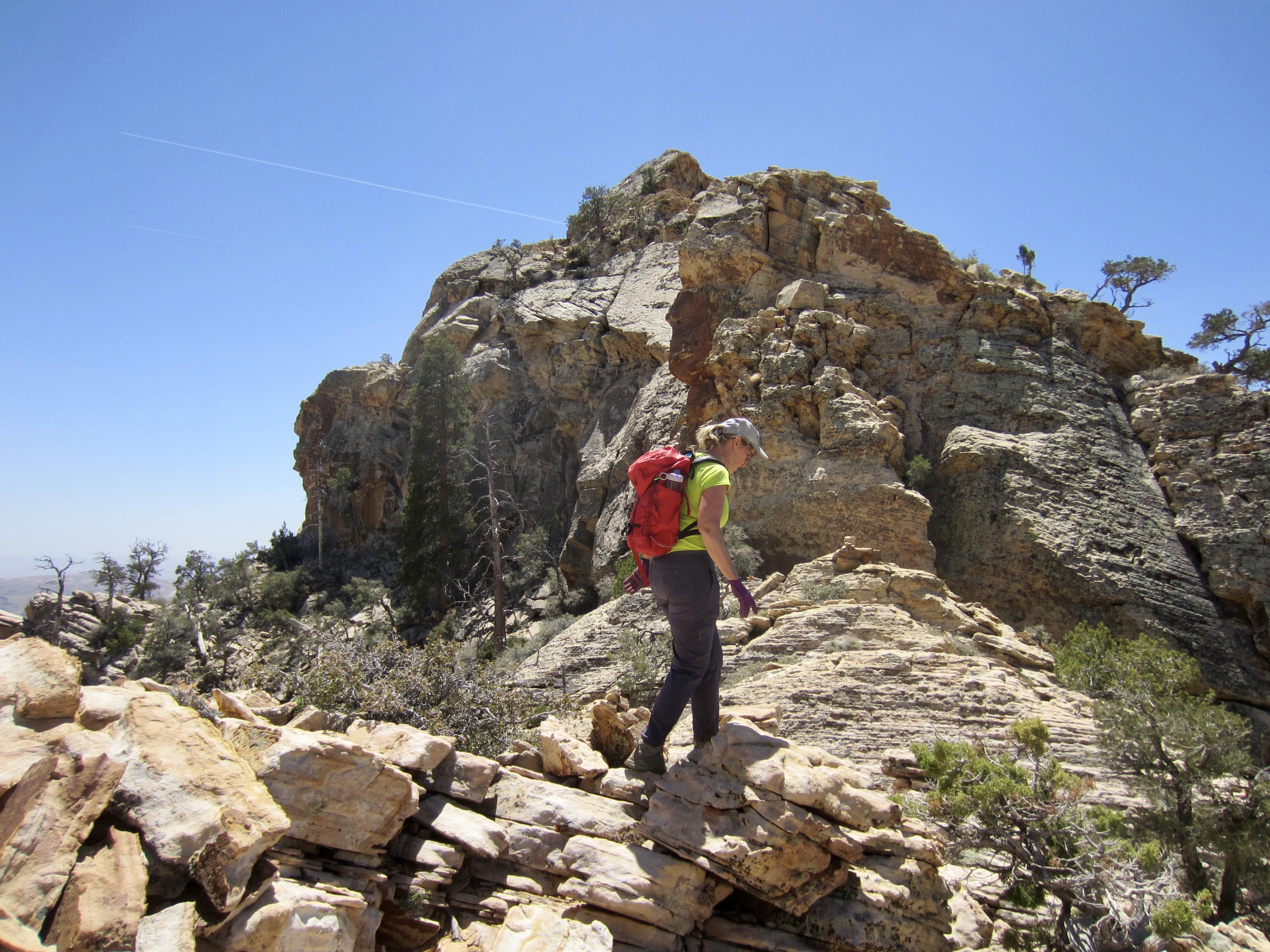 Eileen Hiking Toward Summit Cliffs