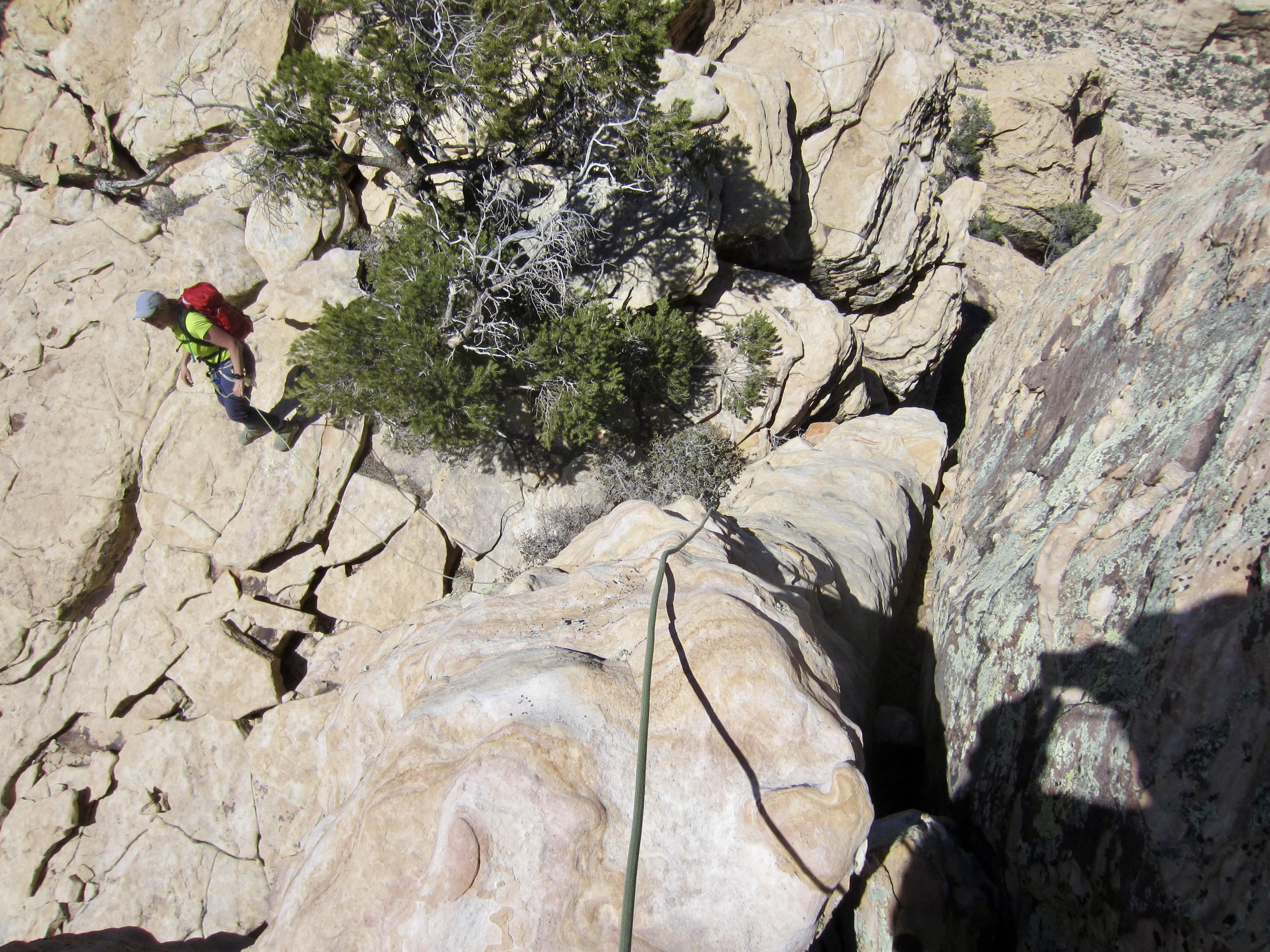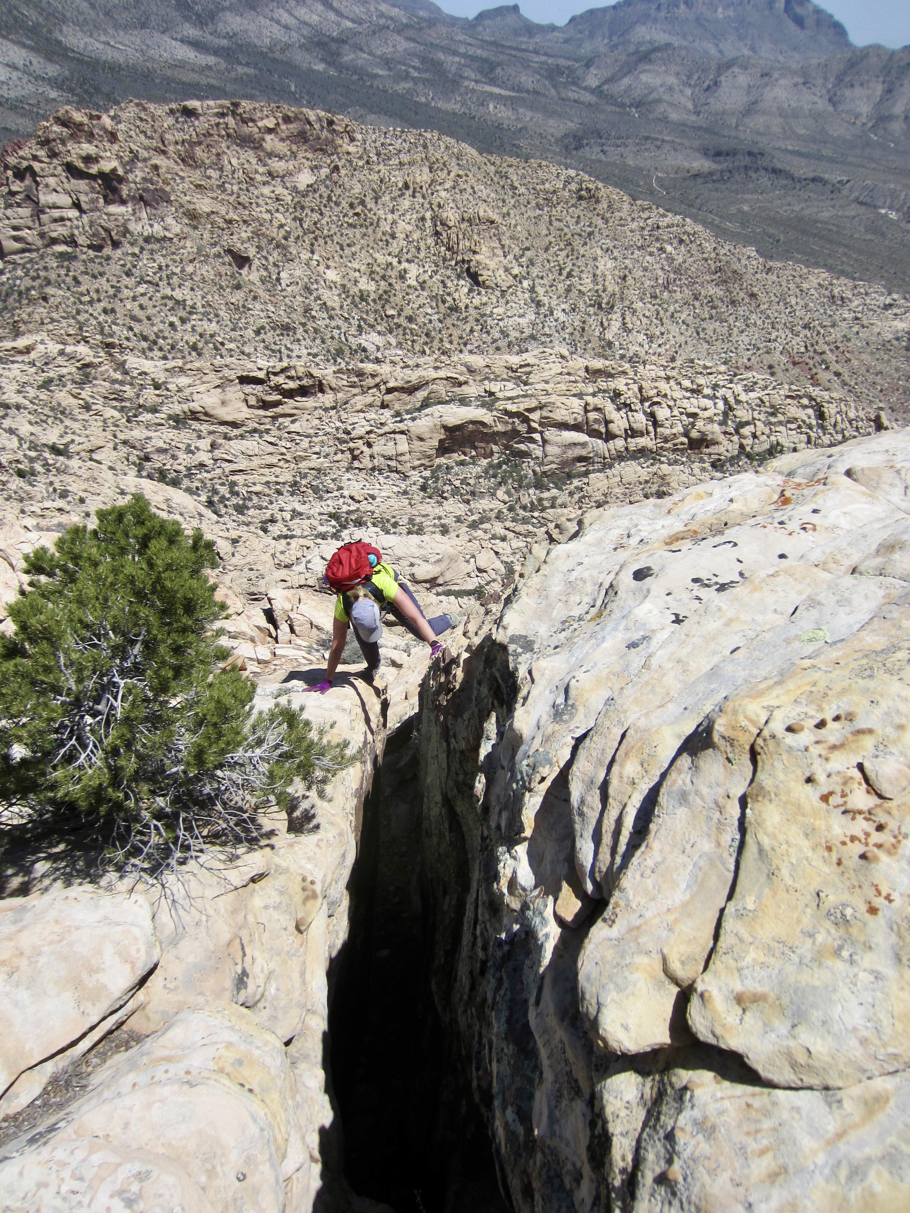 Down-Climbing Crux With Rope Below False Summit