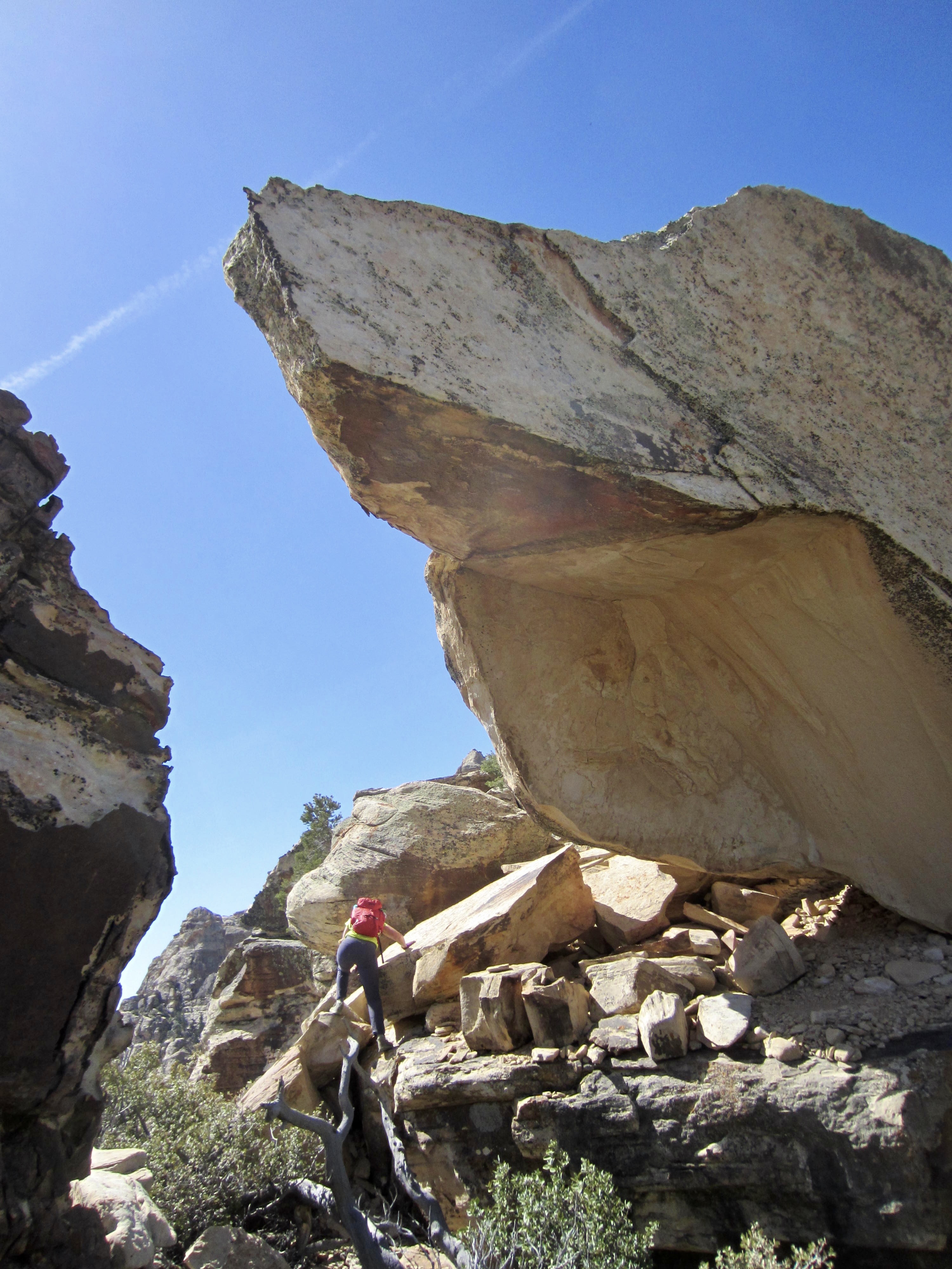 Aside from the north ridge, there are several other routes up White Rock Peak. Some of these are non-technical scrambling ascents, such as the southwest slope route from Willow Springs. Others are Class 5 climbs, such as the Tunnel Vision route on the northeast face. Interestingly, on the day that Eileen and I climbed the north ridge, other parties summited via these two other routes.