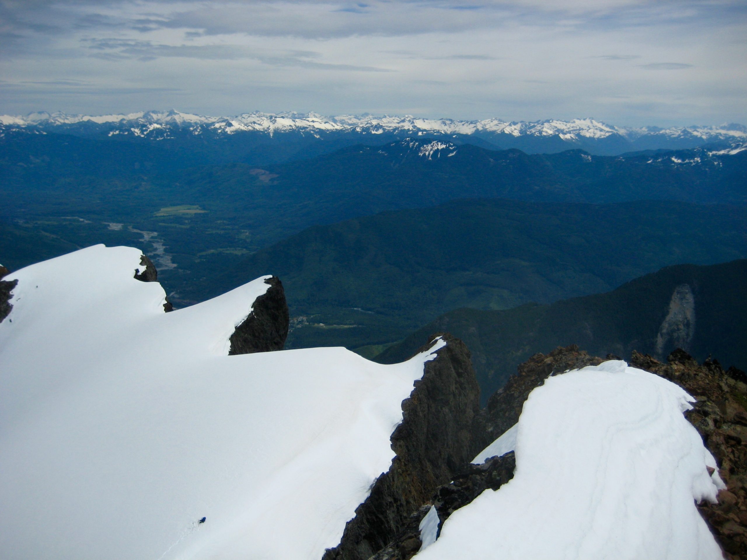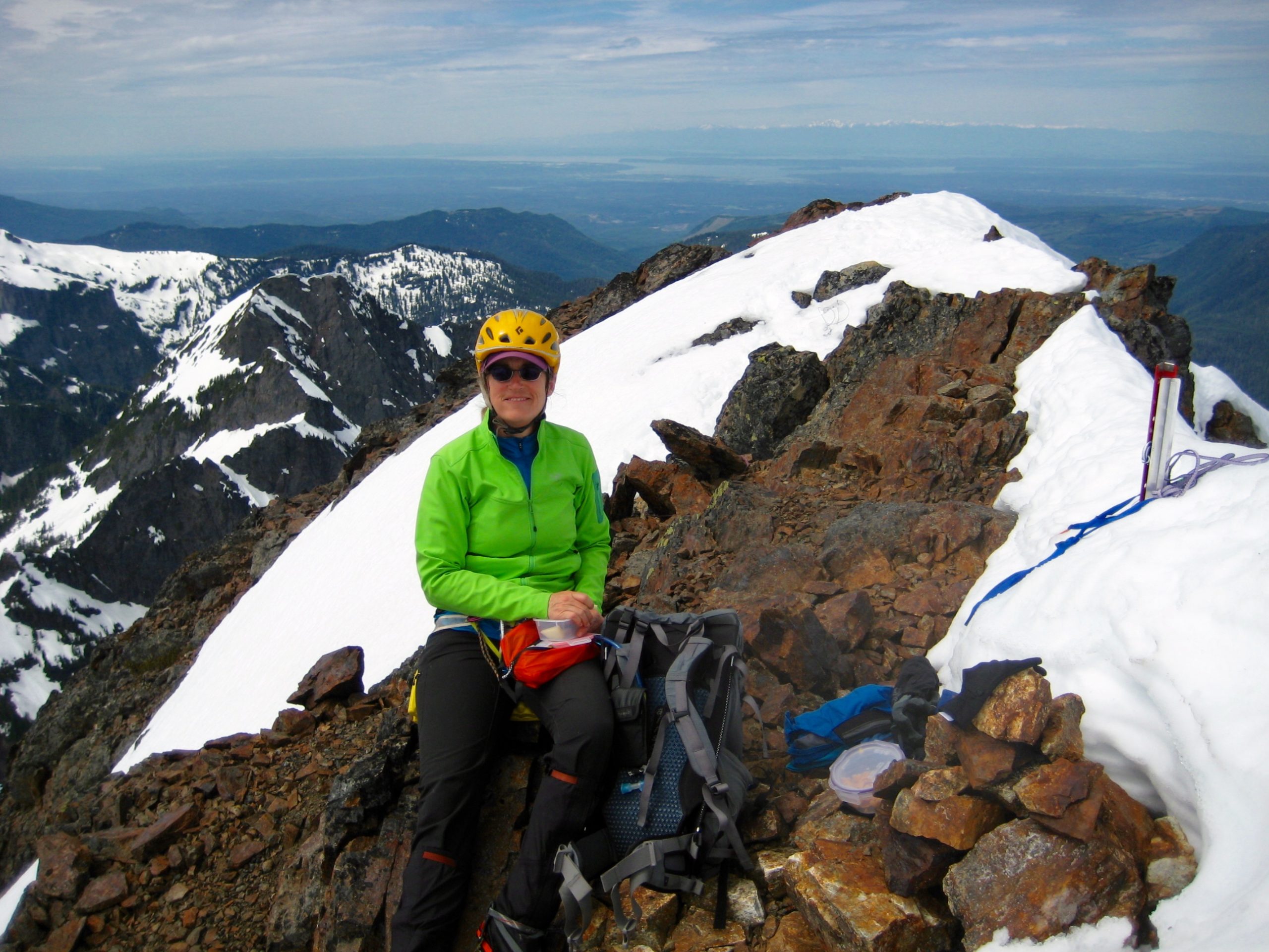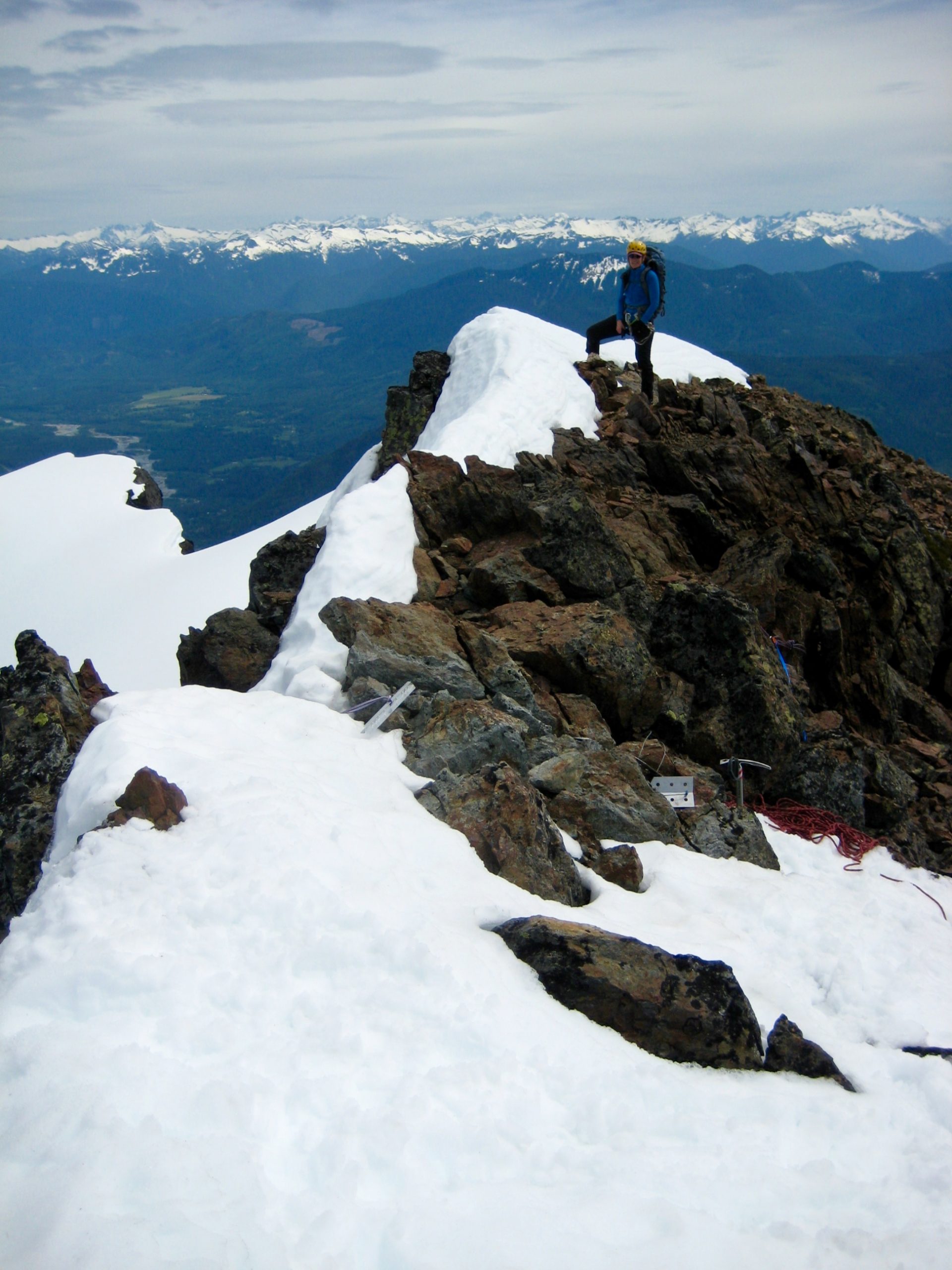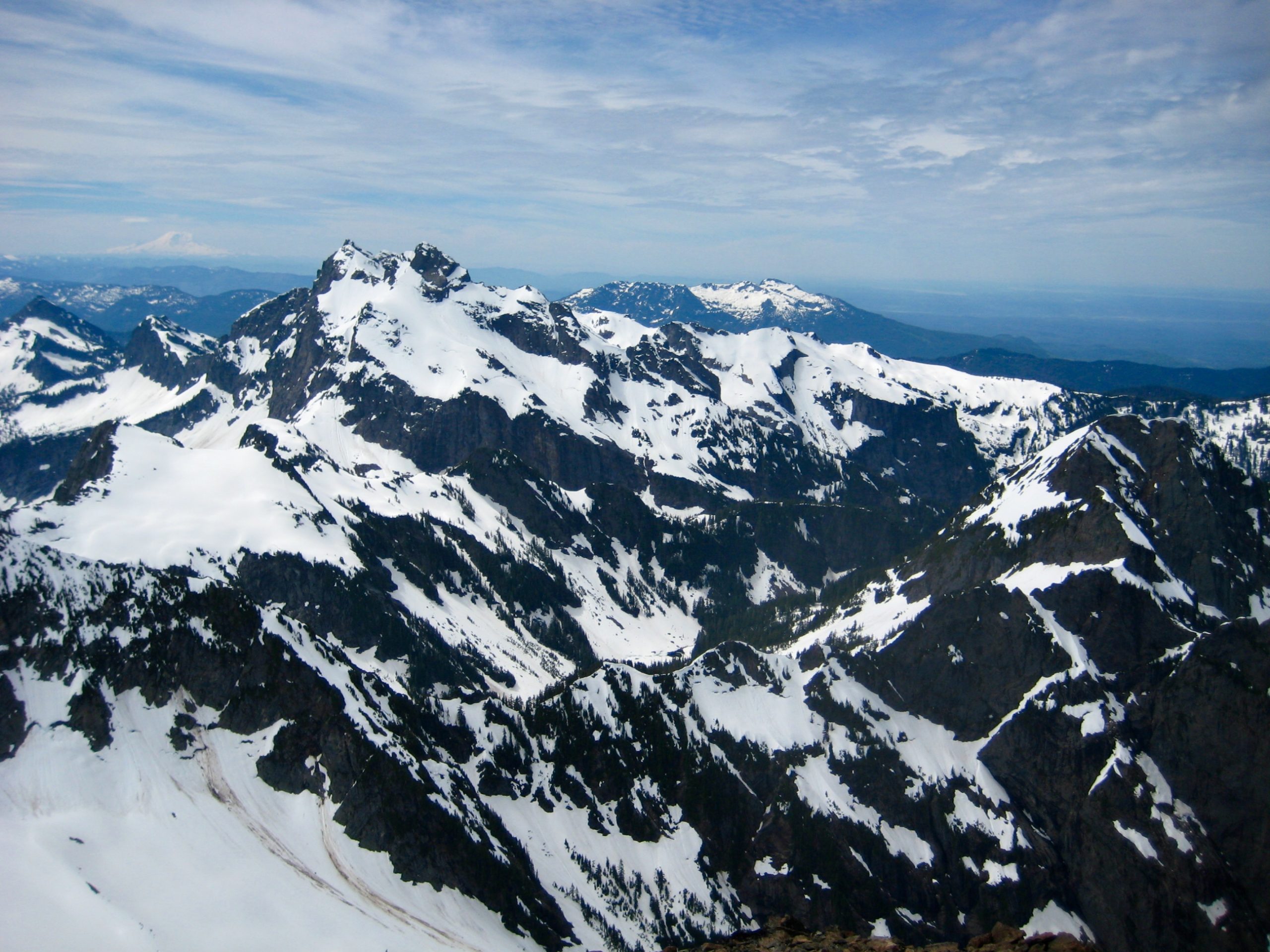 We both topped out by late morning (4.9 hours + 2300 feet from camp) and took some time to enjoy the summit views.  Whitehorse Mountain is quite removed from the Cascade crest as a whole, but nearby Three Fingers Mountain completely dominates the southern view.