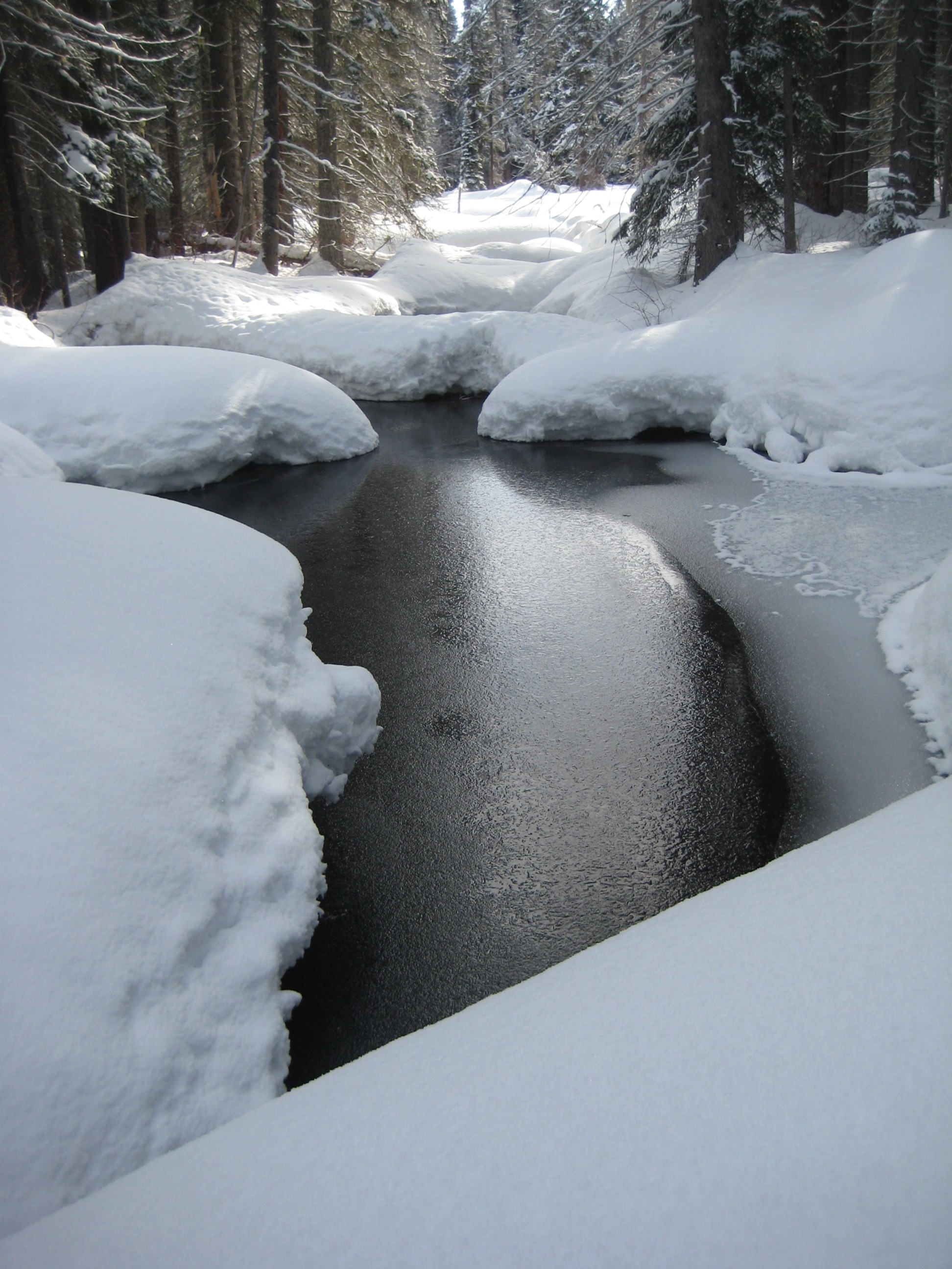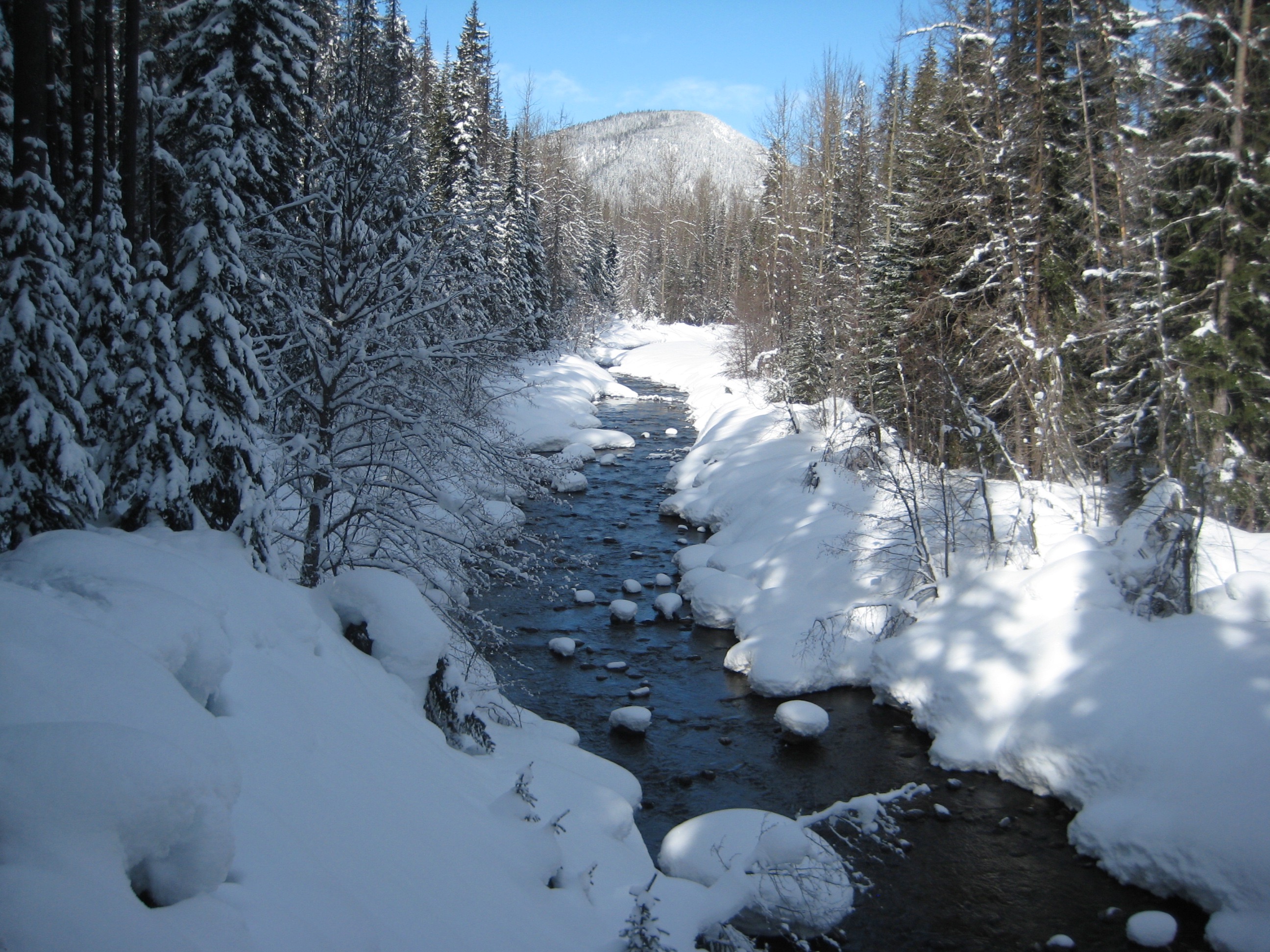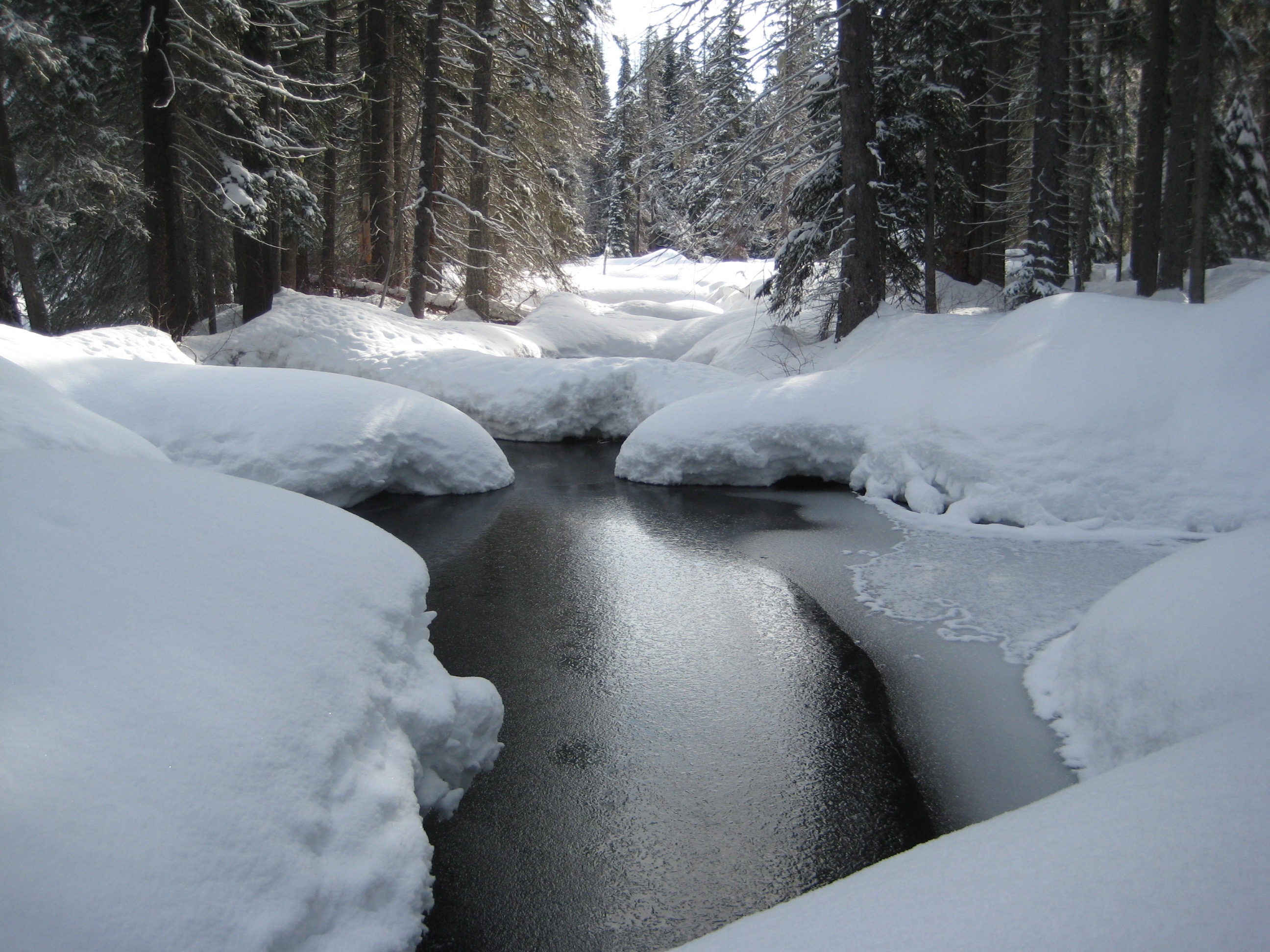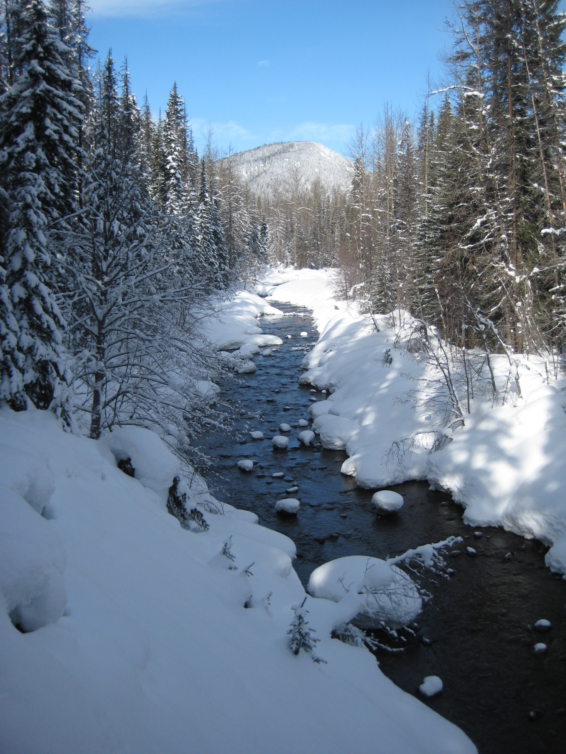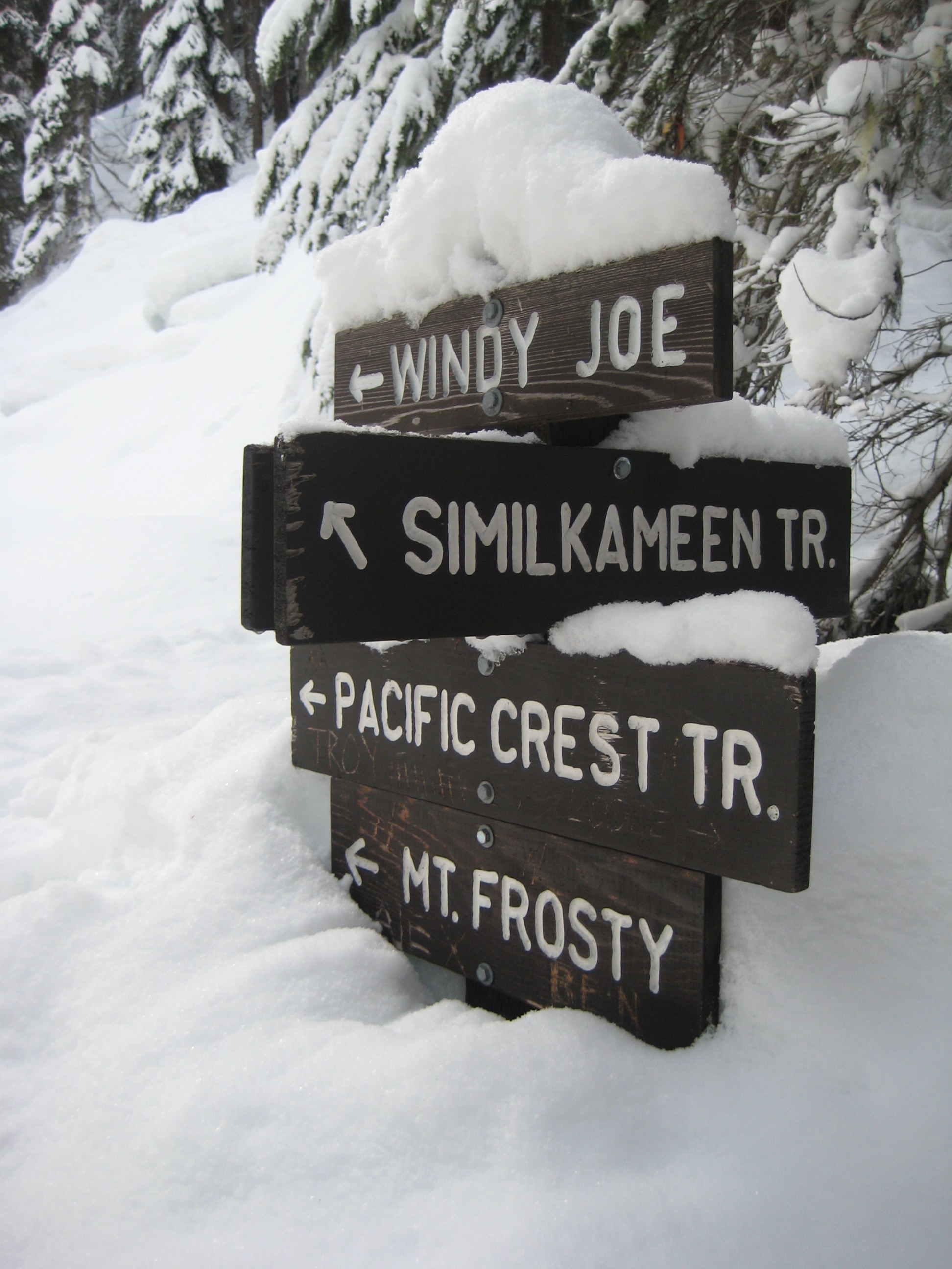 We started at the “Muddy Beaver” Trailhead within the resort and followed a groomed ski trail down to the Similkameen River and then upstream ½ mile to a vehicle bridge on Gibson Pass Road. We crossed the river and skied back down the other side for 1¼ miles until encountering an obvious junction. At this point, the Similkameen River Trail goes downhill to the left and the Windy Joe / Frosty Mountain / Pacific Crest Trail goes uphill to the right.