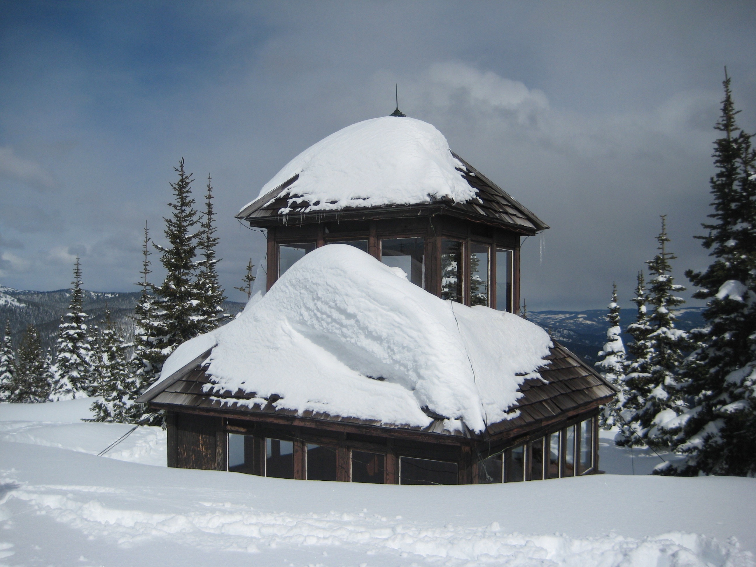 While spending an extended weekend at Manning Park Resort with Lynn Tucker and the Washington Ski Touring Club, Eileen and I did a backcountry ski tour up to Windy Joe Lookout. This is a very popular year-round destination for all manner of hikers, skiers, and snowshoers in Manning Provincial Park. The fire lookout and associated mountain are named for Joe Hilton, a long-time park employee and trail builder.