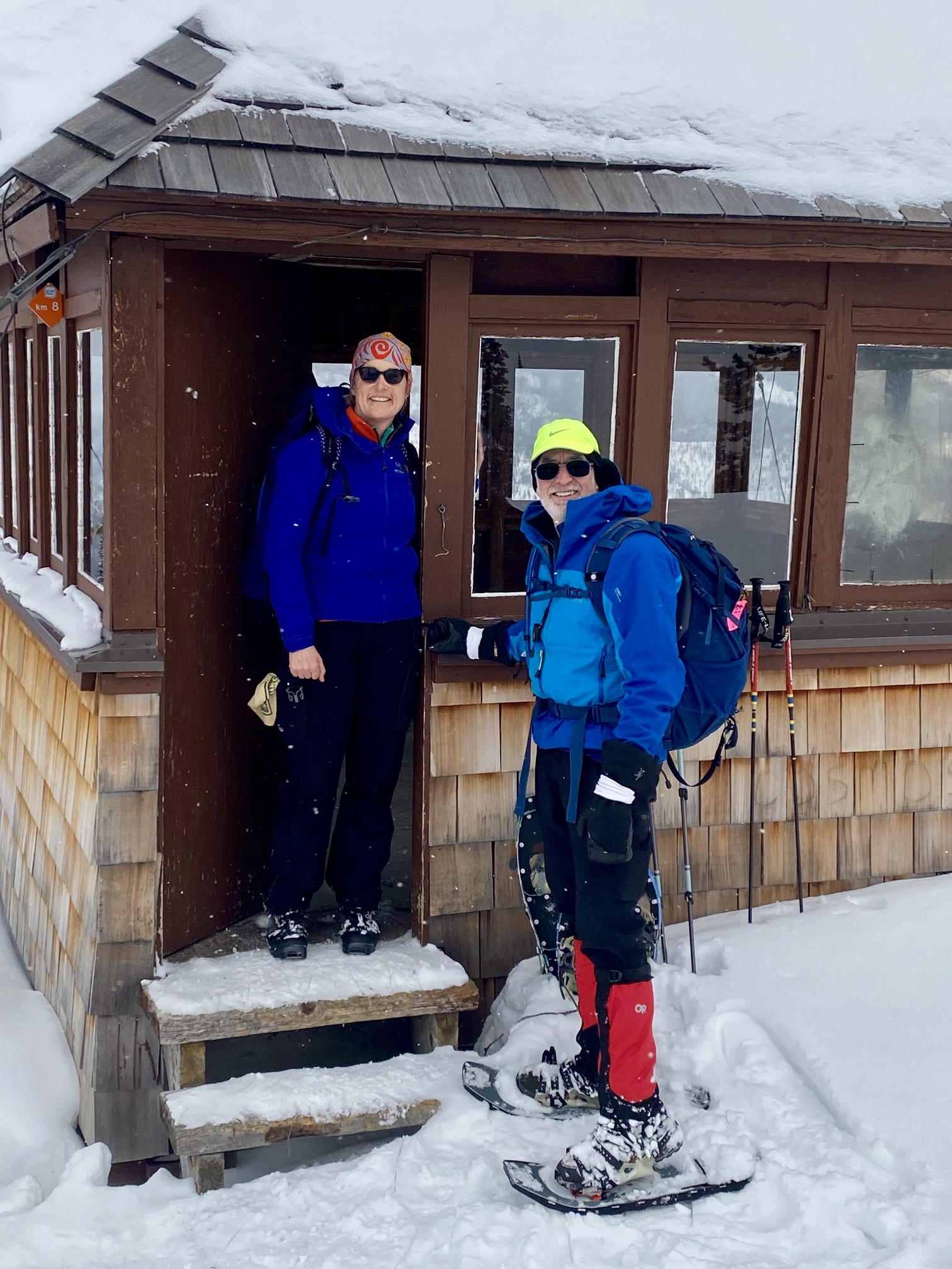 For our descent, Eileen and Yoko elected to stow their snowshoes and simply boot down the trail, whereas I chose to wear my snowshoes for extra traction. Both approaches worked well, and we were back at the trailhead by 5:00pm (2.5 hours + 5.4 miles + 100 feet from lookout).