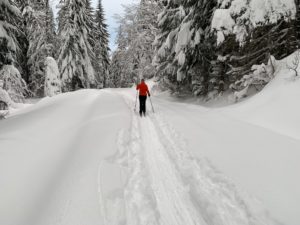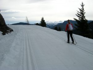 In addition to XC/BC hybrid ski touring, I enjoy cross-country stride-skiing and skate-skiing on groomed trails; backcountry nordic ski touring on forest roads and rolling mountain terrain; backcountry telemark skiing and snowshoeing on steeper mountain terrain; and even some downhill telemark skiing at lift-assisted resorts.