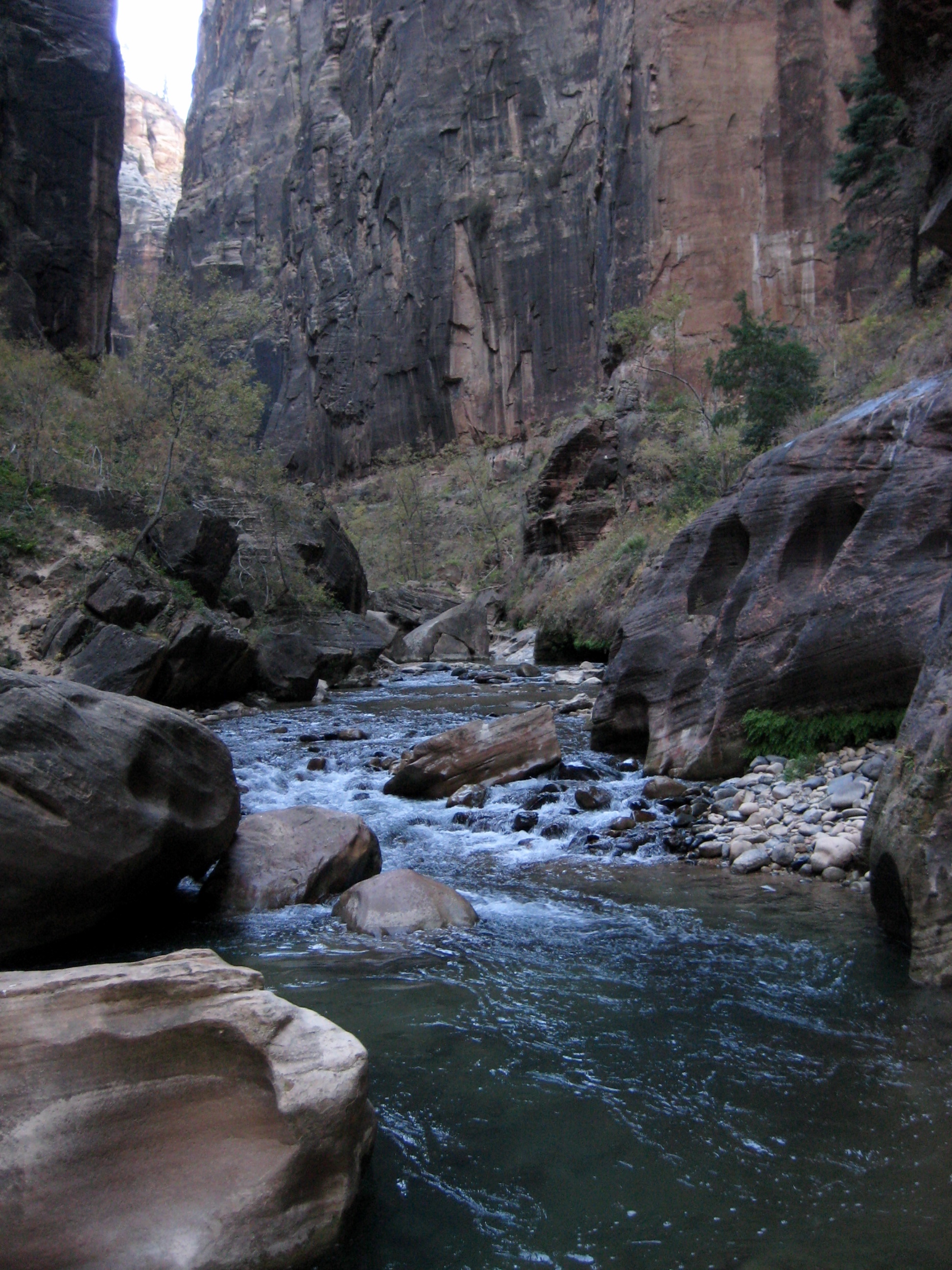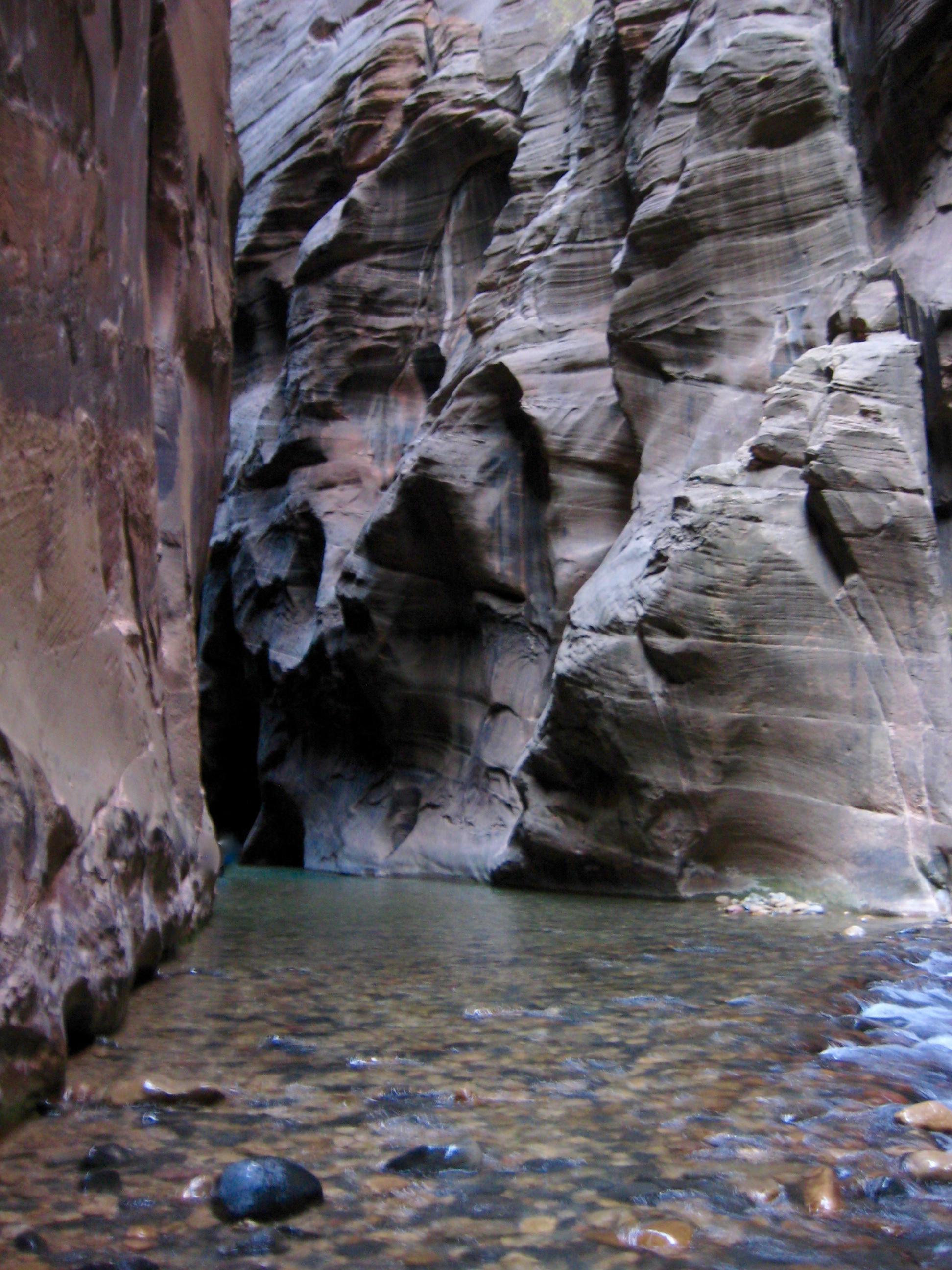 Very quickly, we entered The Narrows proper, where vertical sandstone walls pinch the canyon down to a width of only 30 to 50 feet.